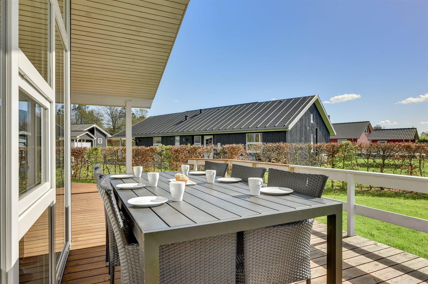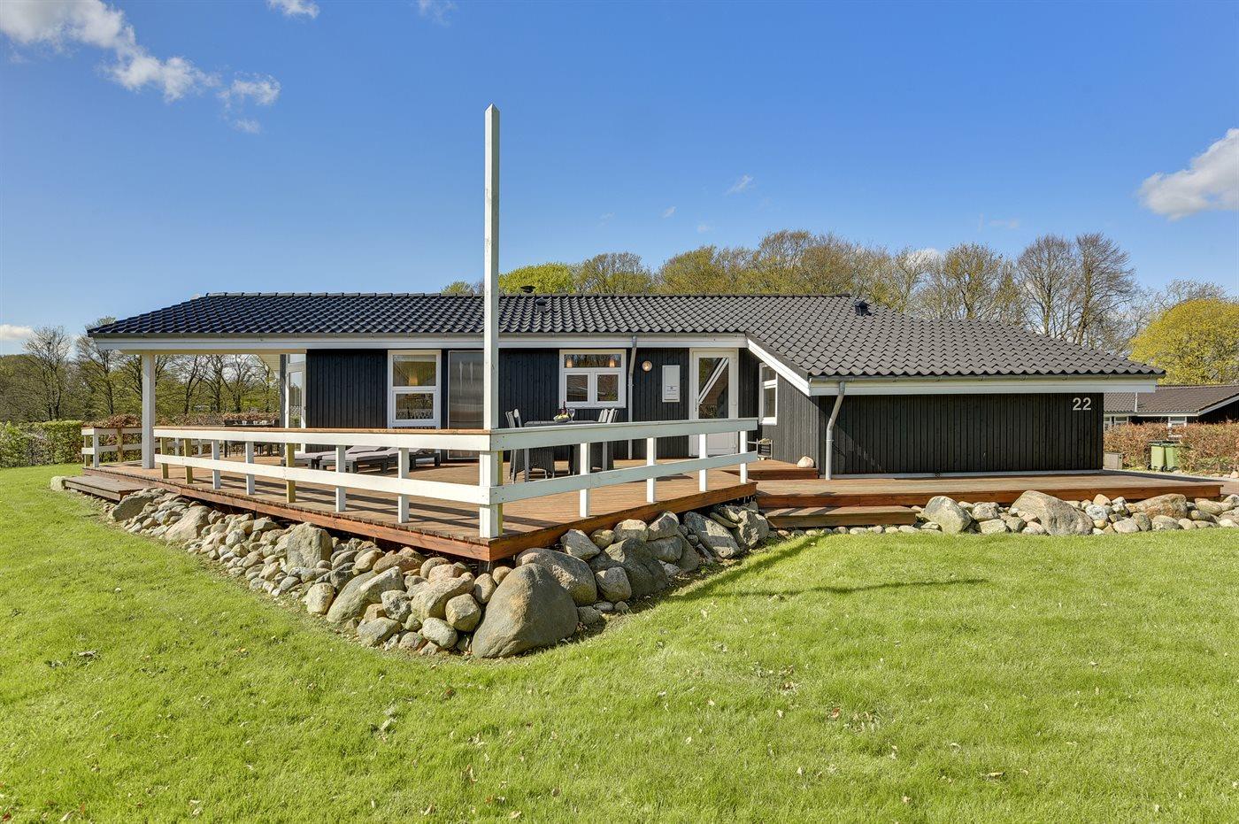 Ferieboligen er beliggende på en 859 m² stor havegrund. Der er 150 m til havet. Nærmeste forretning er beliggende i en afstand af 4000 m. Til ferieboligen hører 60 m² terrasseareal. Desuden er der 15 m² overdækket terrasse. Gynge. Sandkasse. Bålsted. Parkering ved ferieboligen.