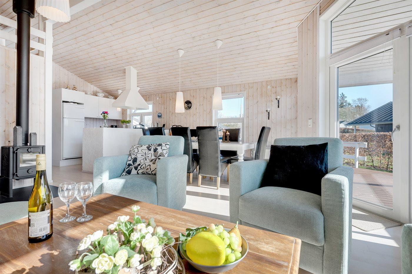Sommerhuset egner sig til 6 personer. Ferieboligen er på 99 m² og er bygget i 2007. Det er tilladt at medbringe 1 husdyr. Ferieboligen er udstyret med energibesparende varmepumpe. Ferieboligen har vaskemaskine. Tørretumbler. Frysekapacitet på 40 liter. Der er desuden brændeovn. Til de små er der 1 stk. barnestol.