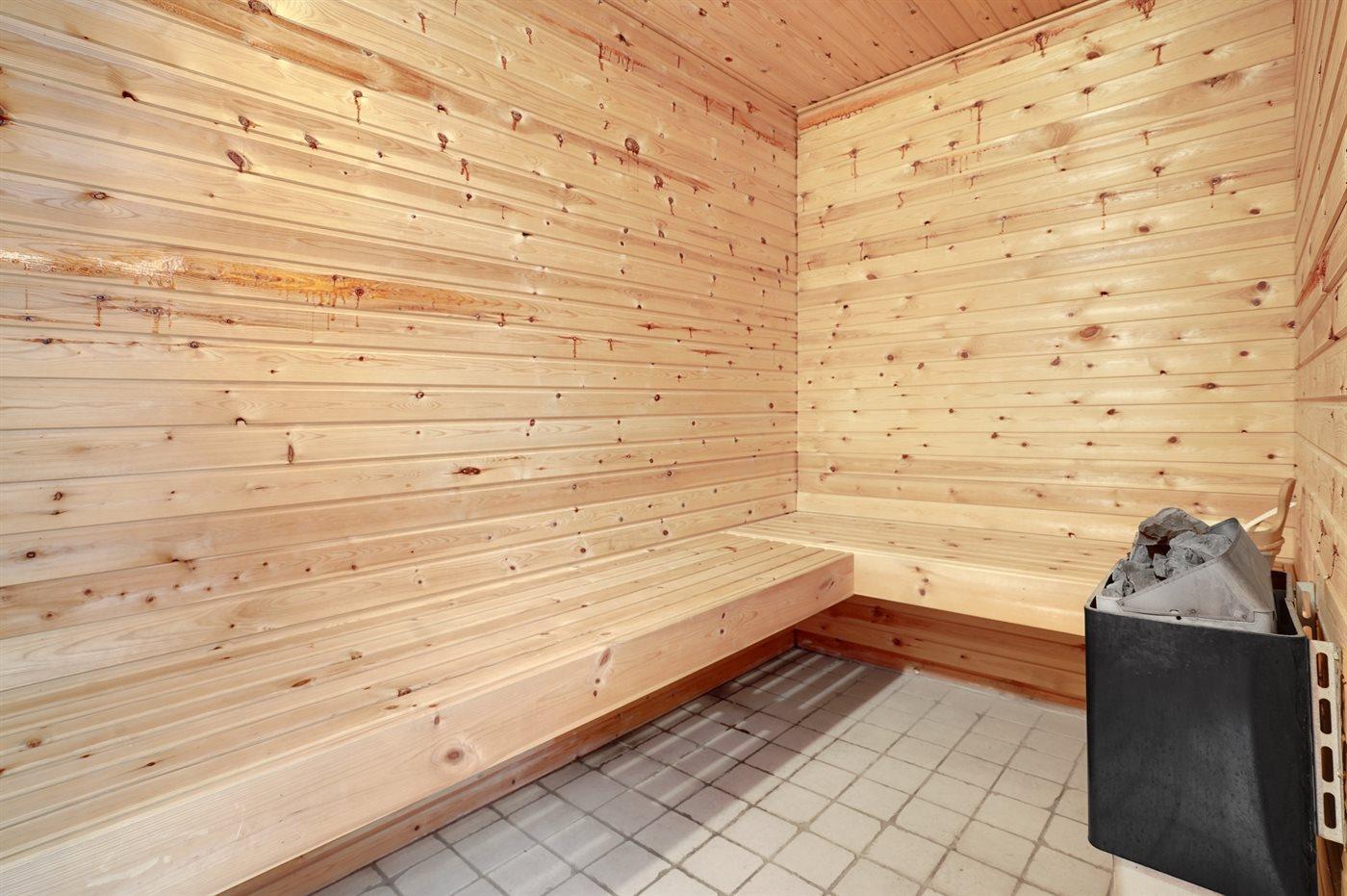 Der er 2 badeværelser med bruseniche og 2 toiletter. Der er gulvvarme på 2 badeværelser. I saunaen er der mulighed for afslapning.
