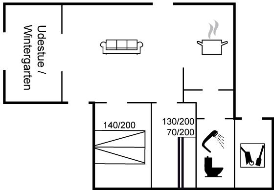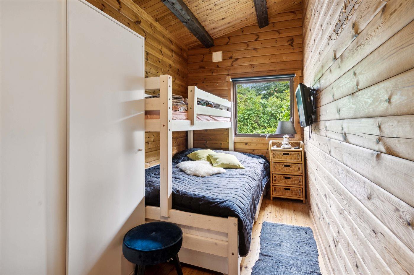 Der er i alt 2 soveværelser. Sovepladserne fordeler sig på: 2 sovepladser i dobbeltseng. 3 sovepladser i køjesenge. Derudover er der 1 stk. barneseng.