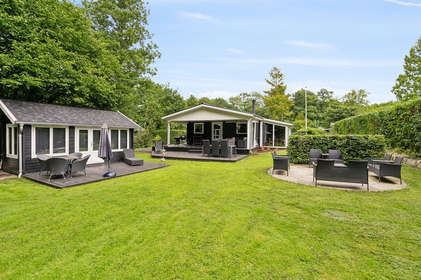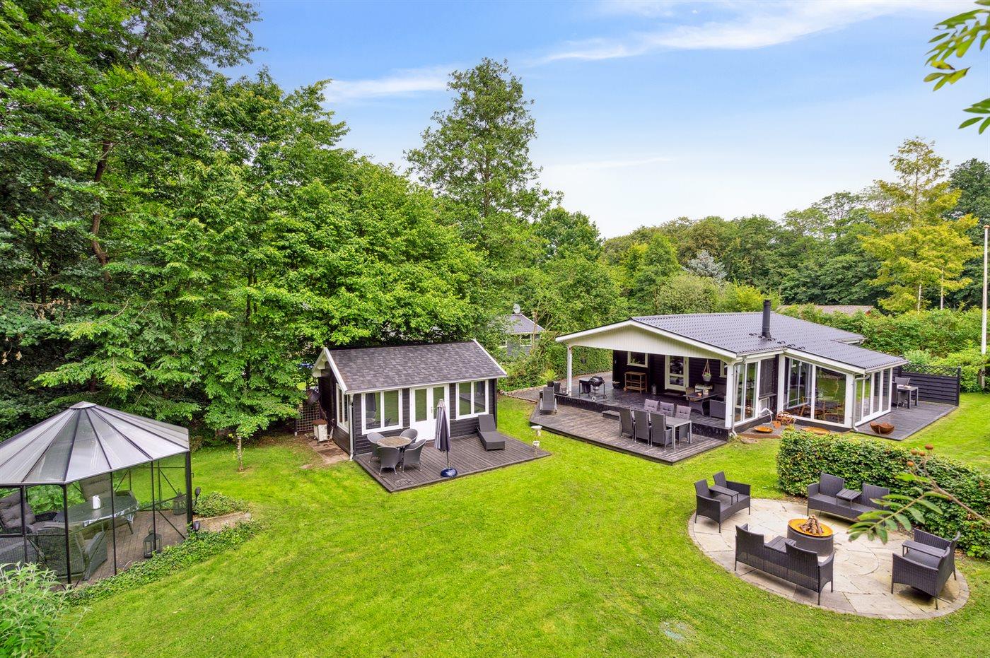 Hyggeligt sommerhus nær børnevenlig strand og golfbane i Aabenraa med moderne faciliteter og stor have.
