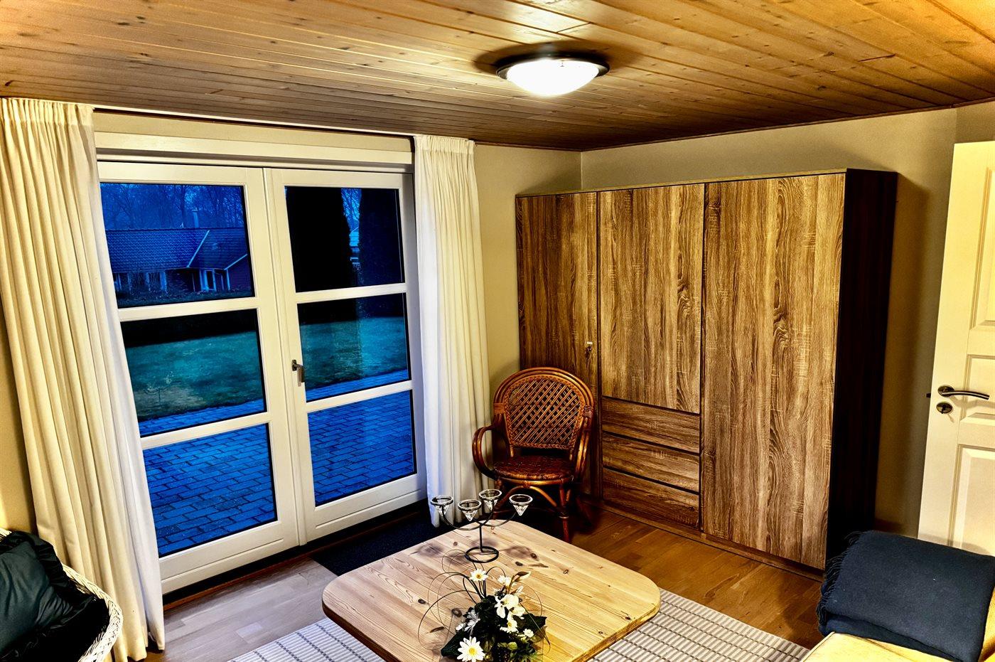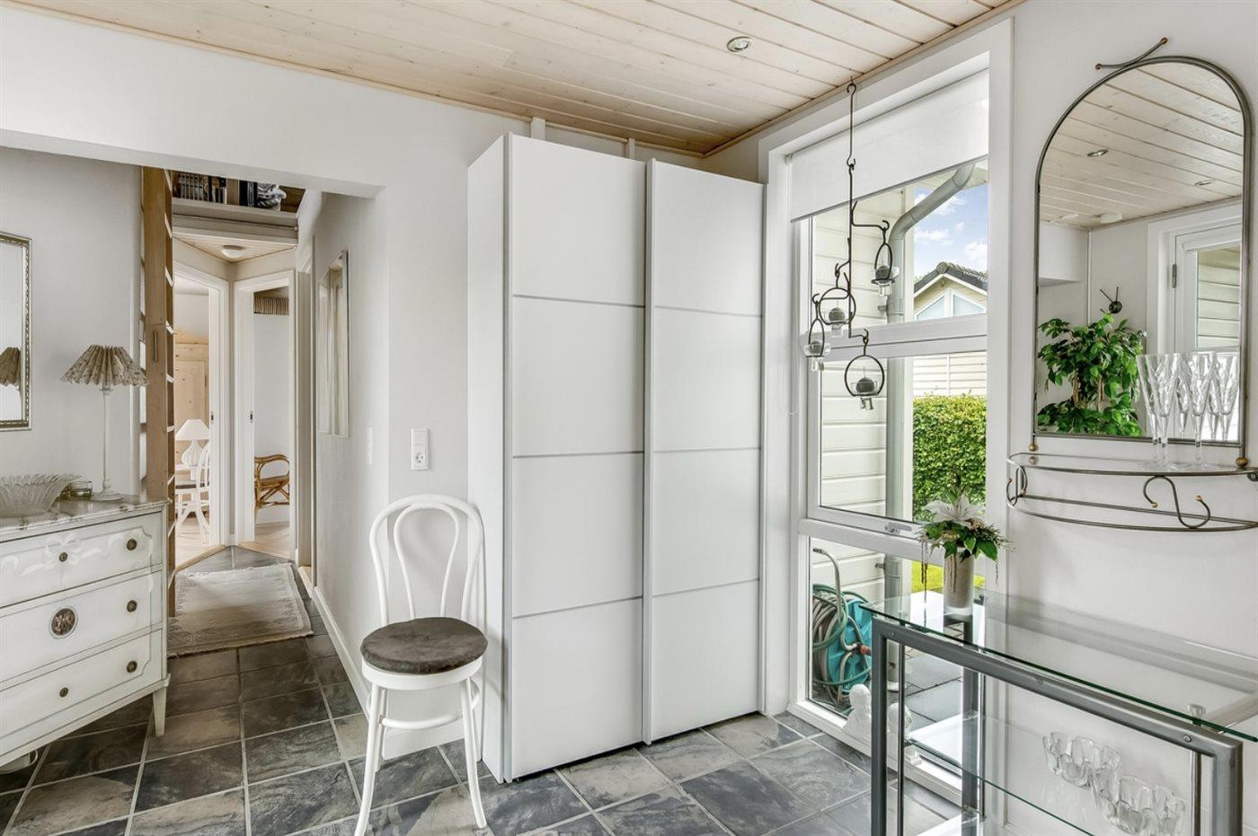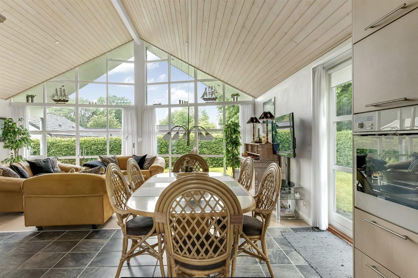 Det rummelige og meget hyggelige sommerhus har et køkken-alrum med et imponerende vinduesparti fra gulv til loft, hvor lyset strømmer ind og giver jer et skønt kig ud til haven. Det store opholdsrum danner den perfekte ramme om feriens indeliv, hvor I kan samles og nyde hinandens selskab. Her finder I et flot sofasæt i en frisk orange farve, som sammen med spisepladsen indbyder til mange hyggelige stunder med god mad, lange samtaler eller et spil ved køkkenbordet.