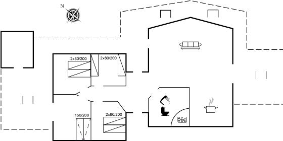 Der er i alt 4 soveværelser. Sovepladserne fordeler sig på: 6 sovepladser i enkeltsenge. 2 sovepladser i sovesofa (enkelt). Derudover er der 1 stk. barneseng.