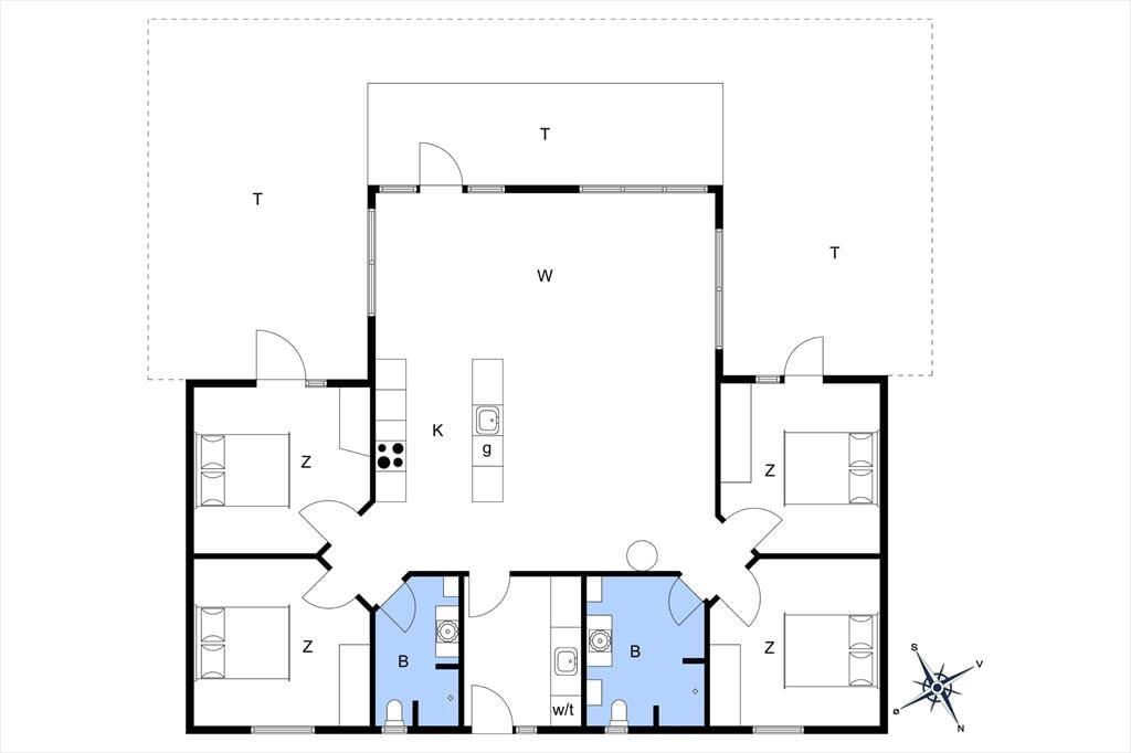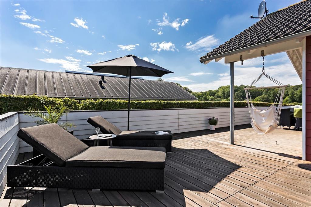 Udendørs venter en stor, delvist overdækket terrasse, hvor du kan nyde ferien i læ og ugenerede omgivelser. Terrassen er delvist indhegnet og indbyder til mange timer i det fri – hvad enten det er morgenkaffe i solen, frokost i skyggen eller lange sommeraftener med grill og god stemning. Den store grund giver masser af plads til leg, boldspil og bevægelse, mens børnene trygt kan udforske omgivelserne. Her kan du høre fuglene kvidre og mærke ferieroen sænke sig, mens du slapper af i havemøblerne. Sommerhusets udendørsarealer er perfekte til både aktiv ferie og ren afslapning, hvor du kan nyde naturen og det rolige sommerhusområde i dit eget tempo.
