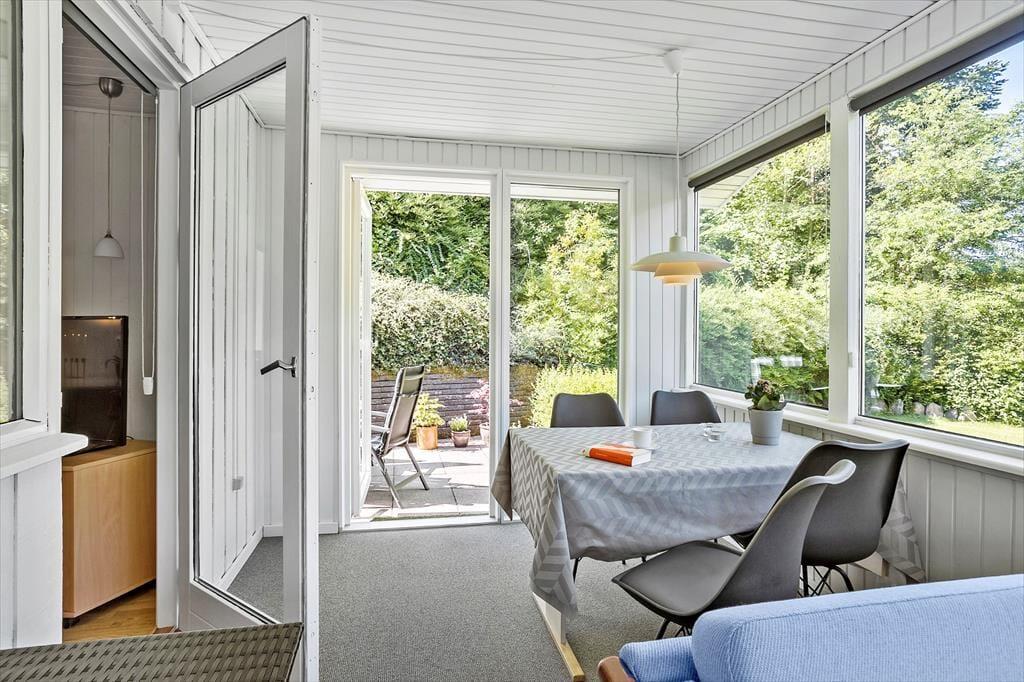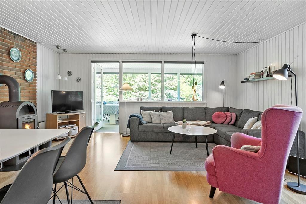 Når du træder ind i sommerhuset, bliver du mødt af en lys og indbydende atmosfære, hvor hyggen straks sætter sig. Den dejlige stue er husets naturlige samlingspunkt og indrettet, så der er god plads til både afslapning og samvær. De store vinduer lukker dagslyset ind og skaber en behagelig forbindelse mellem inde og ude. Fra stuen er der direkte udgang til havestuen, hvor du kan nyde ferien i læ for vind og vejr og lade blikket hvile på den grønne have. Her er det oplagt at starte dagen med en stille kop kaffe eller slutte aftenen af med et spil kort og gode samtaler, mens roen sænker sig. Sommerhuset emmer af velholdt charme og giver en tryg og hjemlig fornemmelse, som gør det let at føle sig tilpas fra første øjeblik.