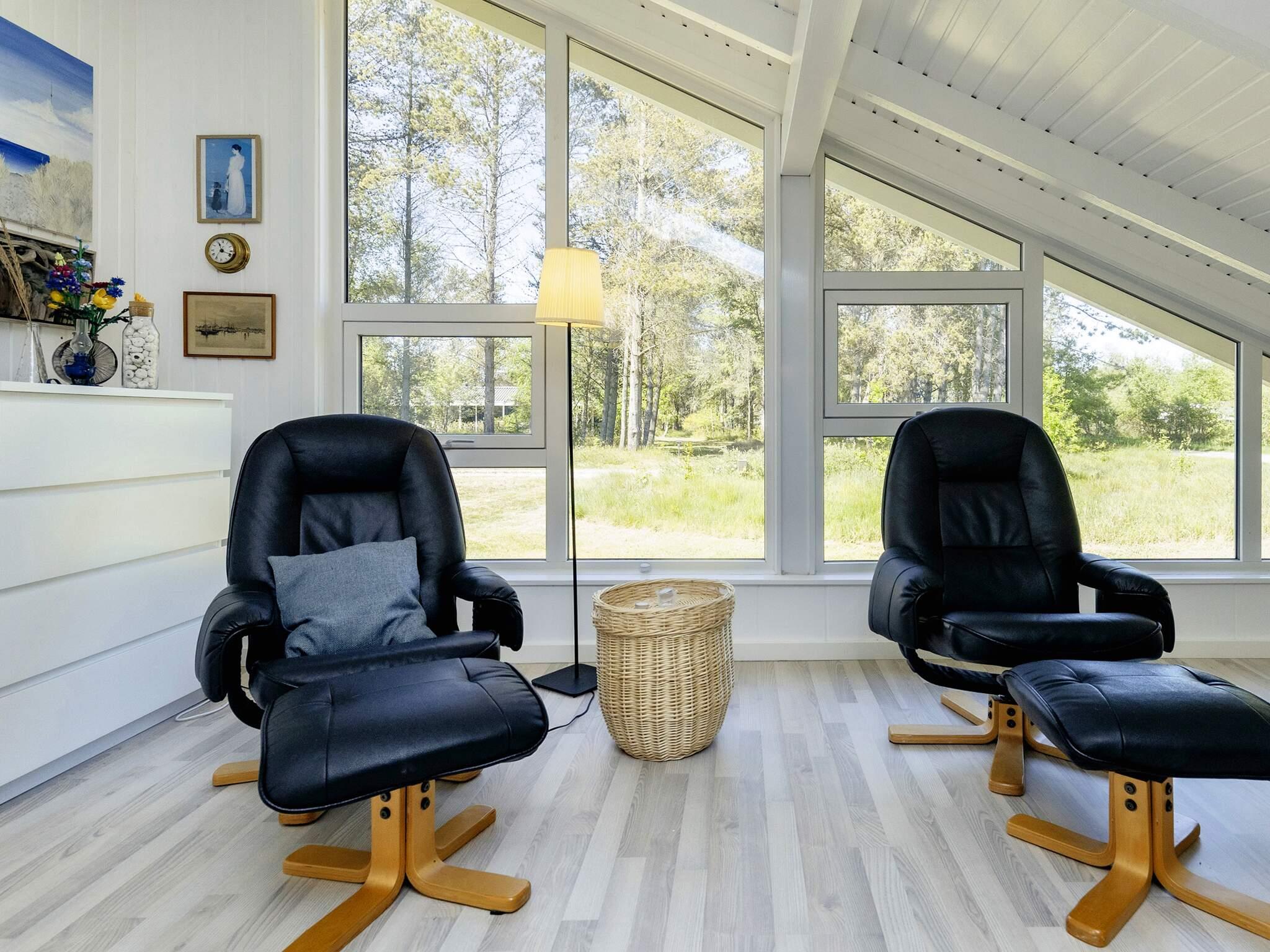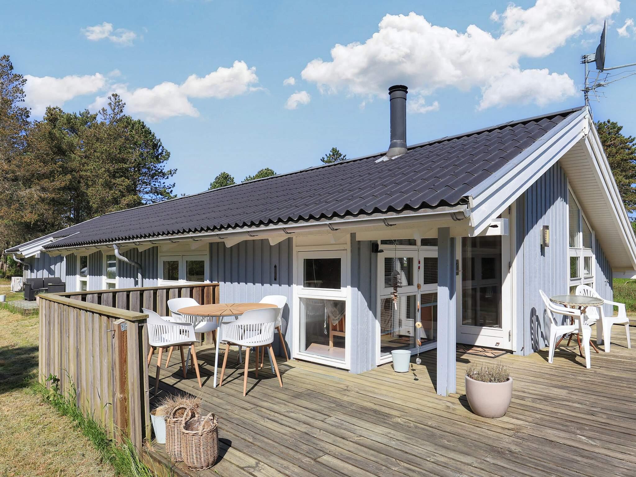 Husets udearealer består af en stor græsplæne og to skønne træterrasser. Den store terrasse finder man ved indgangen, her vil det være muligt at sidde, nyde naturen og grille dejlig mad på husets grill. Den lille terrasse er indrettet med et loungesæt, hvor man kan sidde op slappe af og nyde naturen. Udlejes ikke til ungdoms- eller håndværkergrupper.