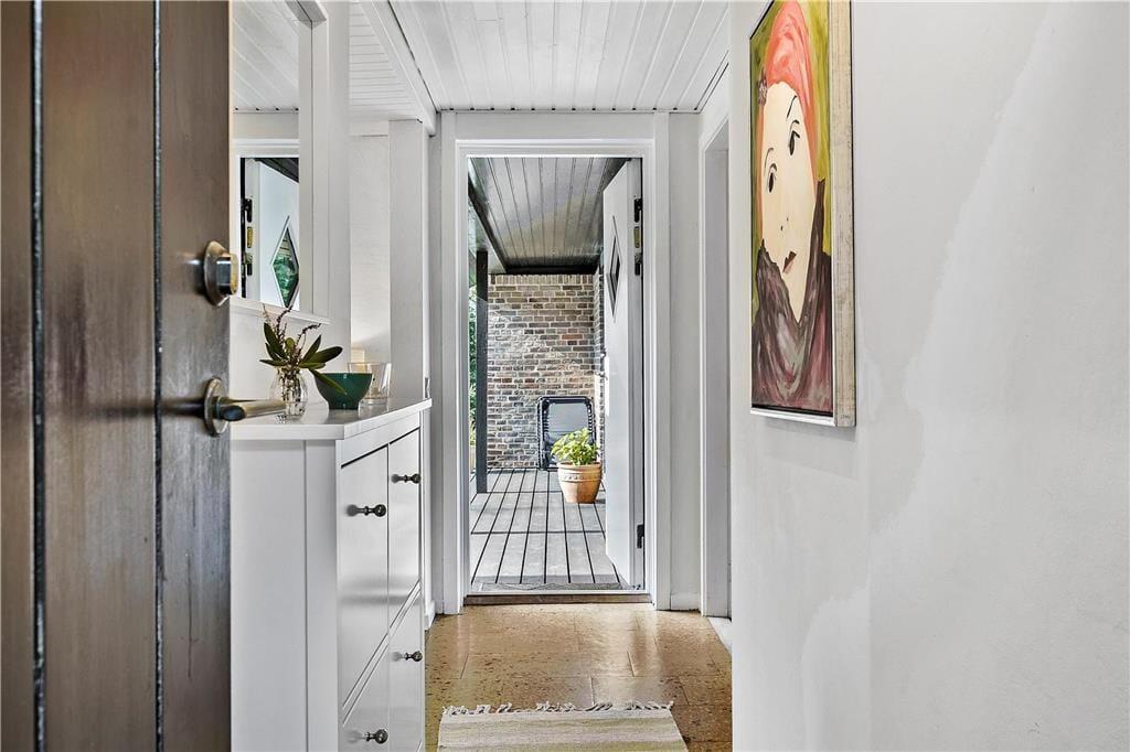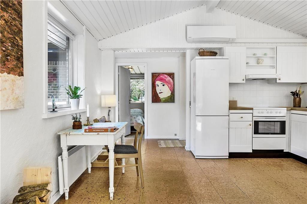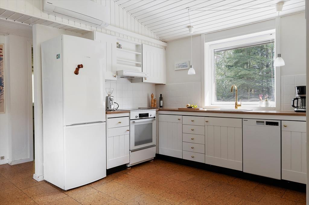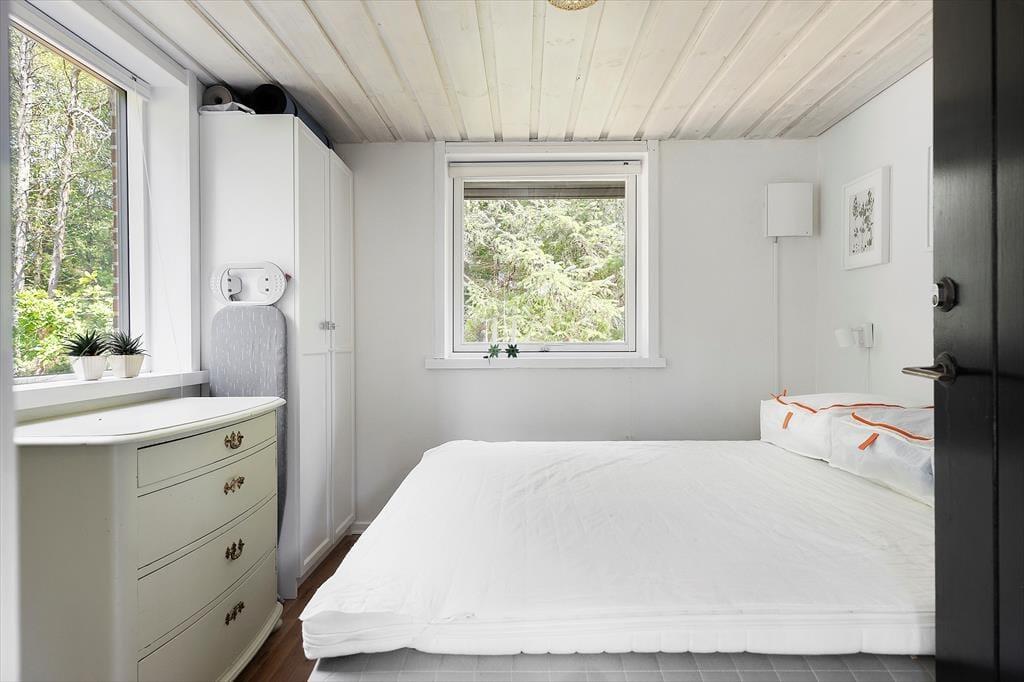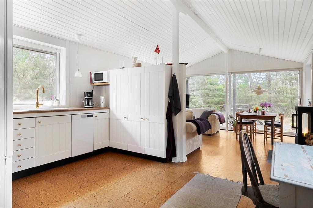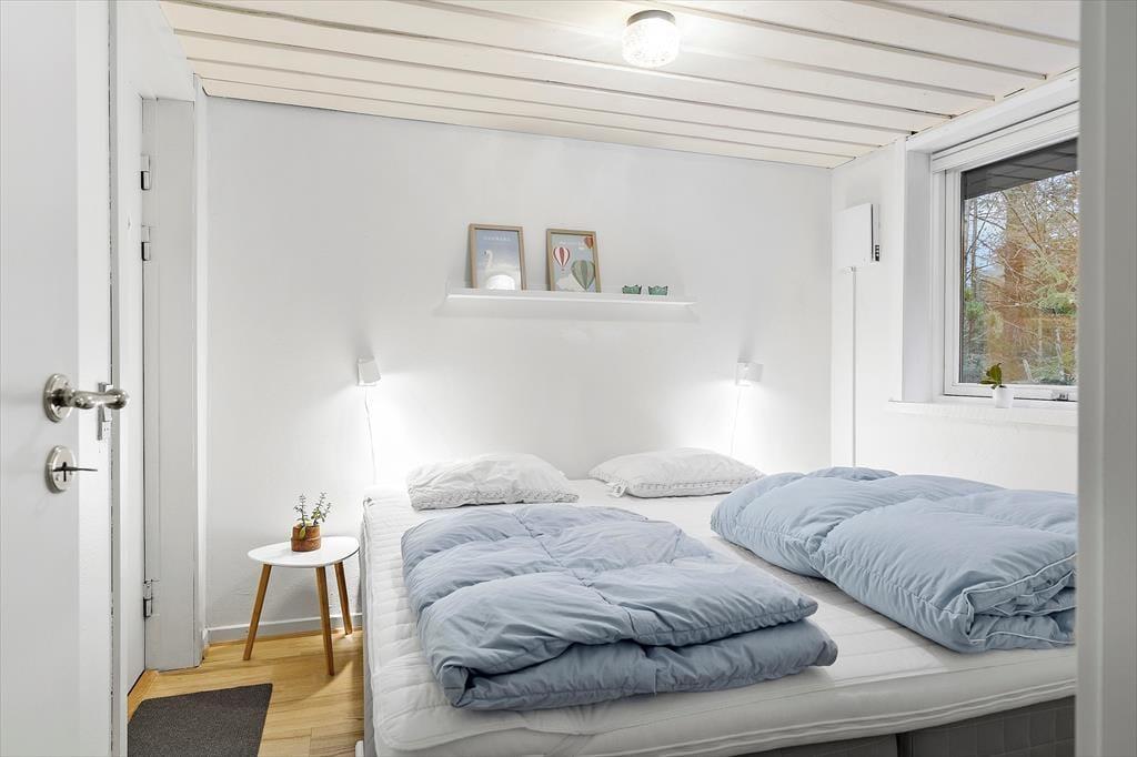 Når du træder ind i sommerhuset, møder du en lys og venlig atmosfære, der straks skaber en følelse af hjemlig hygge. De åbne rum og det smukke lysindfald fra de store vinduer giver huset en skøn rummelighed. Stuen og køkkenet ligger i åben forbindelse, hvilket gør det nemt at være sammen – uanset om du laver mad eller slapper af i sofaen med en god bog. Soveværelserne er indrettet med fokus på komfort, og badeværelset er lyst og moderne, så alle kan starte dagen på den bedst tænkelige måde.