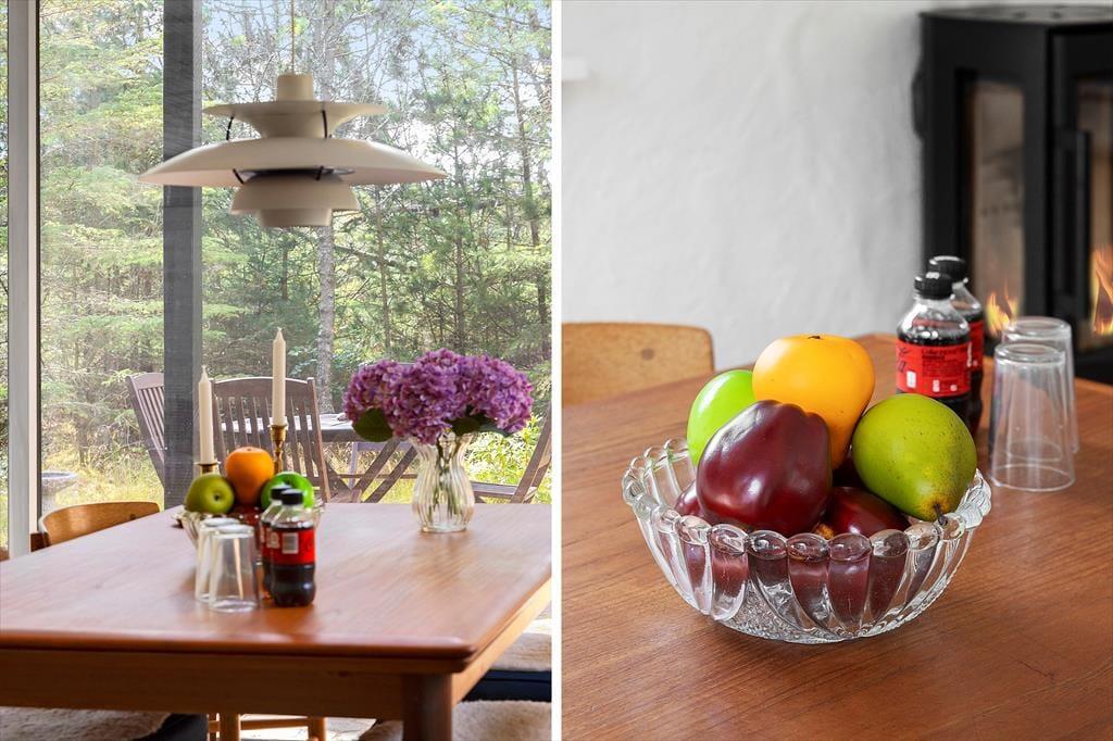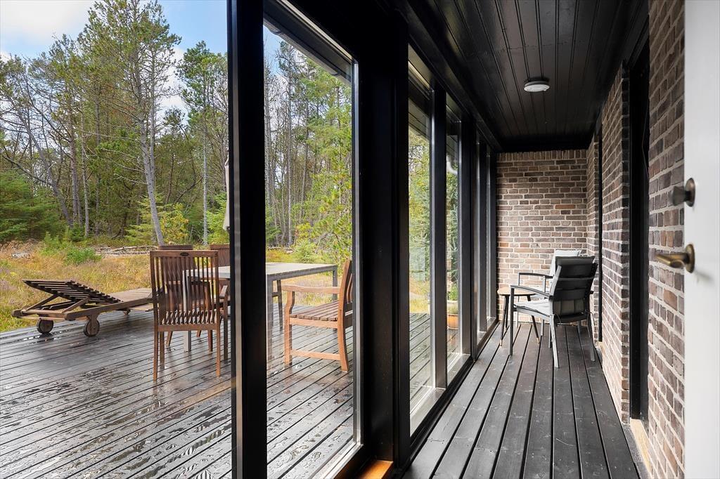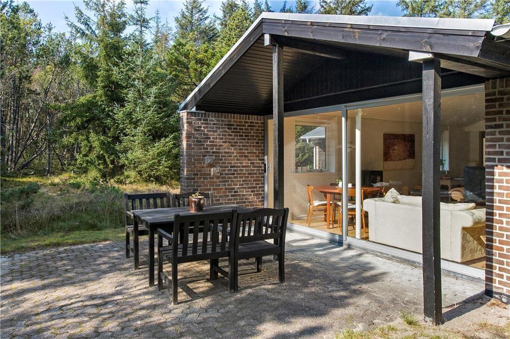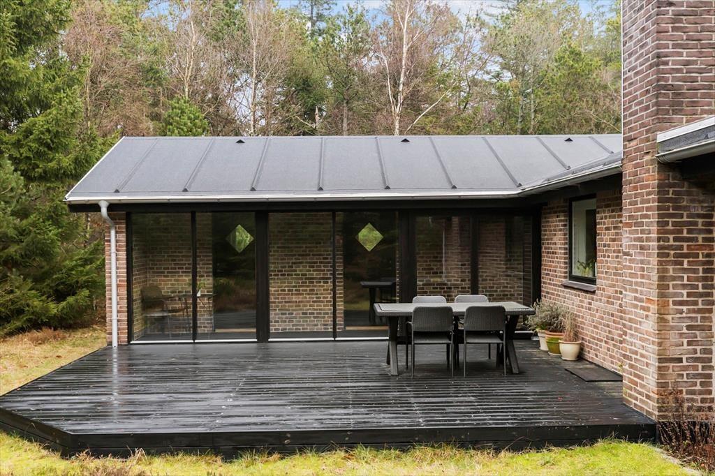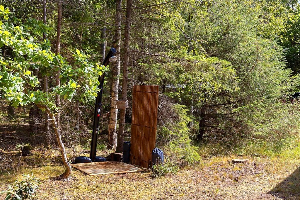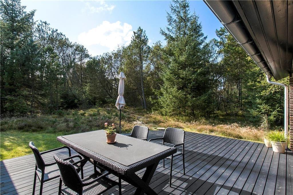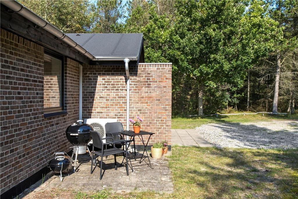 Sommerhusets terrasse indbyder til afslappede feriestunder fra morgen til aften. Her kan du nyde din morgenkaffe i solen, samle familien til frokost under åben himmel eller grille aftensmaden på de lange lyse sommeraftener. Udeområdet er omkranset af smuk natur og giver mulighed for både afslapning og leg – uanset om det er børnene, der boltrer sig, eller de voksne, der ønsker en fredelig stund med udsigt til de grønne omgivelser.