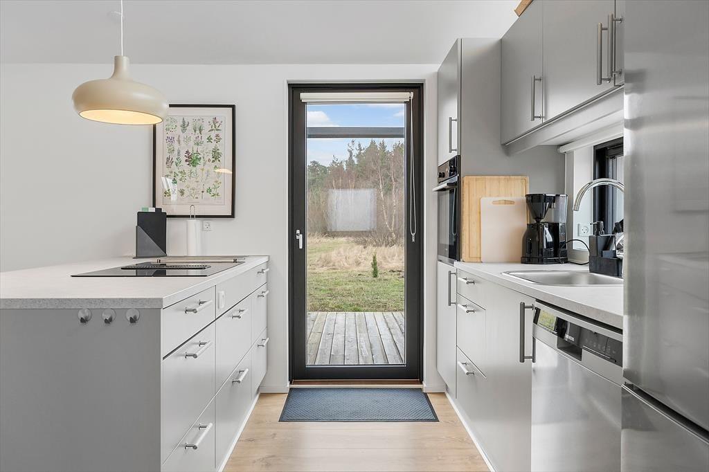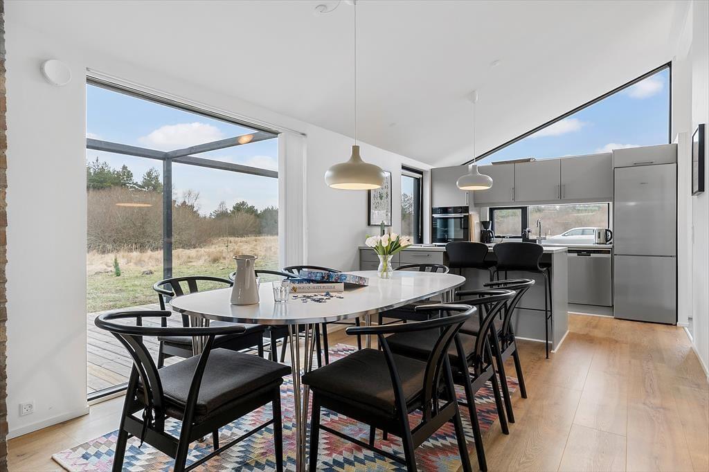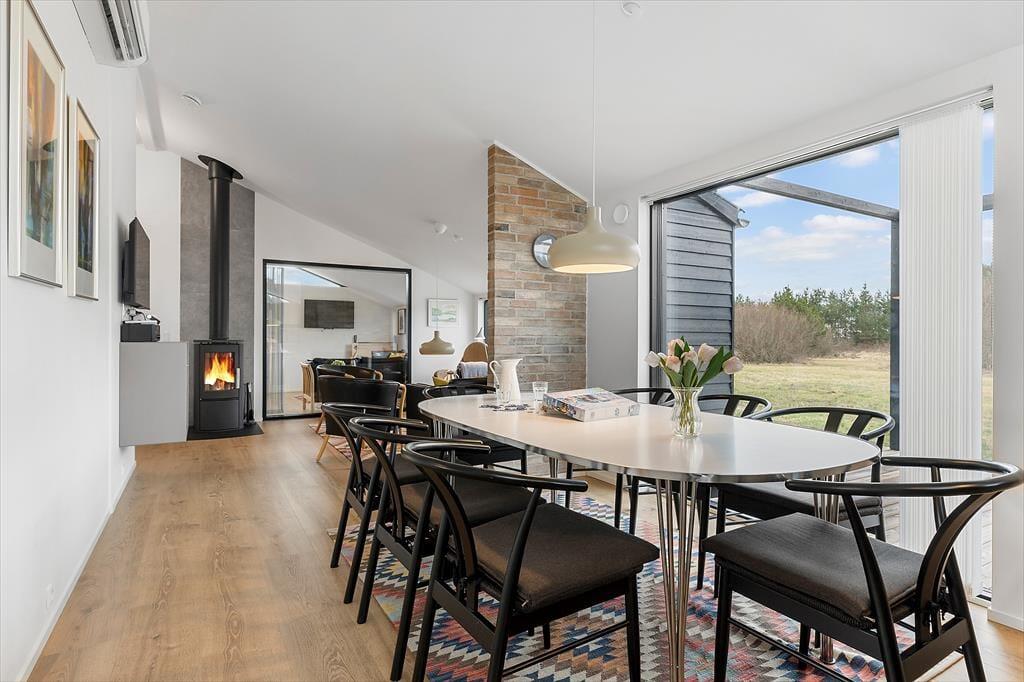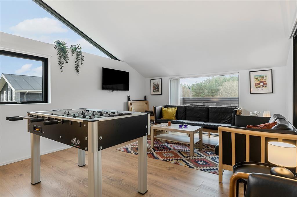 Indenfor mødes du af et rummeligt og veludstyret sommerhus, der har plads til både hygge og fællesaktiviteter. Stuen indbyder til afslapning med en god film eller en brætspilsaften, og det store køkken gør det let at samles om madlavningen. Huset har også et aktivitetsrum, hvor du kan dyste mod familie og venner i sjove spil eller slappe af foran tv’et. Hvis du har en firbenet ven med på ferie, er det ingen hindring – her er hunden nemlig velkommen.