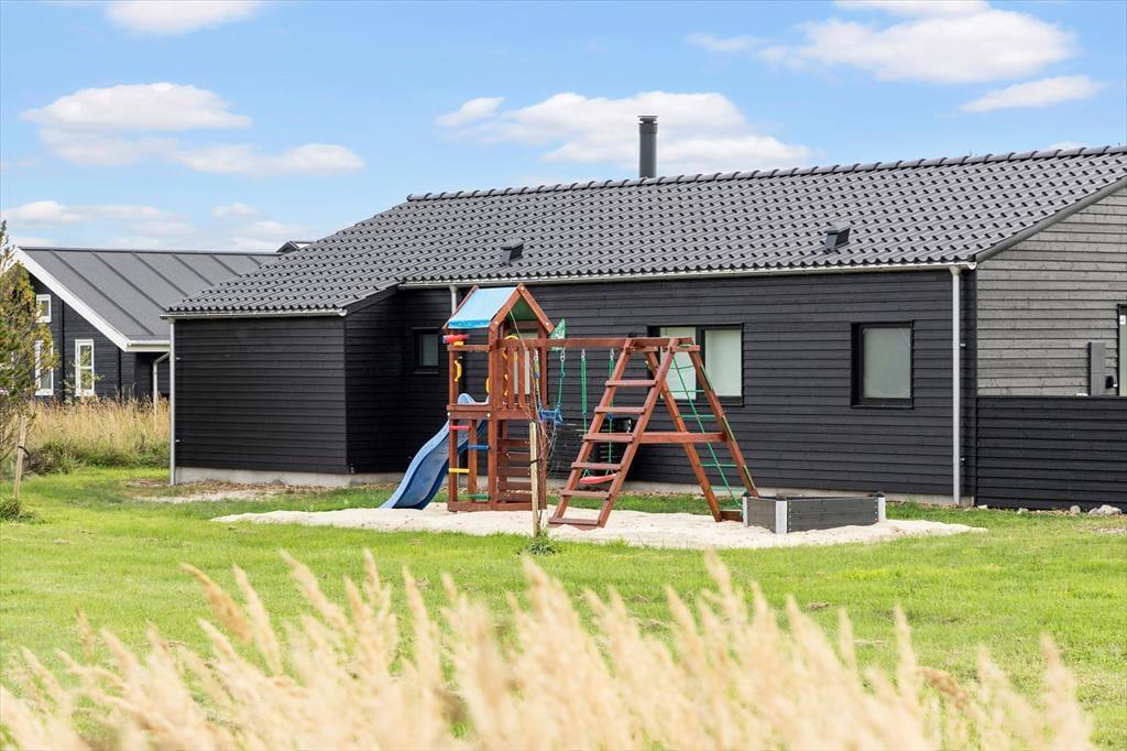 Udenfor venter en skøn have med god plads til leg og afslapning. Børnene kan more sig på gyngestativet med rutsjebane, mens de voksne nyder en kop kaffe på terrassen. De omkringliggende stier gør området ideelt til både vandreture og løbeture, hvor du kan opleve den smukke natur helt tæt på. Og med masser af plads omkring huset kan du være sikker på en ferie i fredelige omgivelser, hvor du virkelig kan koble af fra hverdagens travlhed.