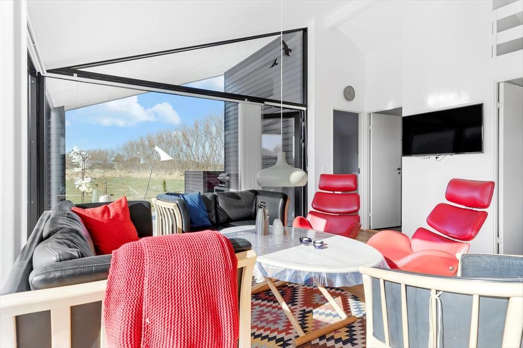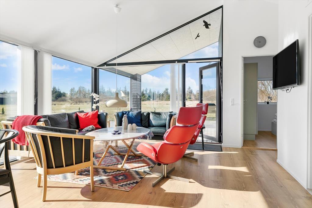 Sommerhuset byder dig velkommen med en rummelig og hyggelig atmosfære. Her er god plads til at samles med familie og venner i den store opholdsstue, hvor lyset strømmer ind gennem vinduerne, og hvor du kan slappe af i bløde møbler efter en dag i naturen. Det veludstyrede køkken ligger i åben forbindelse med stuen, så I kan være sammen, mens der laves mad eller hygges omkring spisebordet. Sommerhuset er desuden hundevenligt, så familiens firbenede ven kan være med på ferien. Her er alle rammer sat for en dejlig og afslappende ferie med fokus på samvær og hygge.