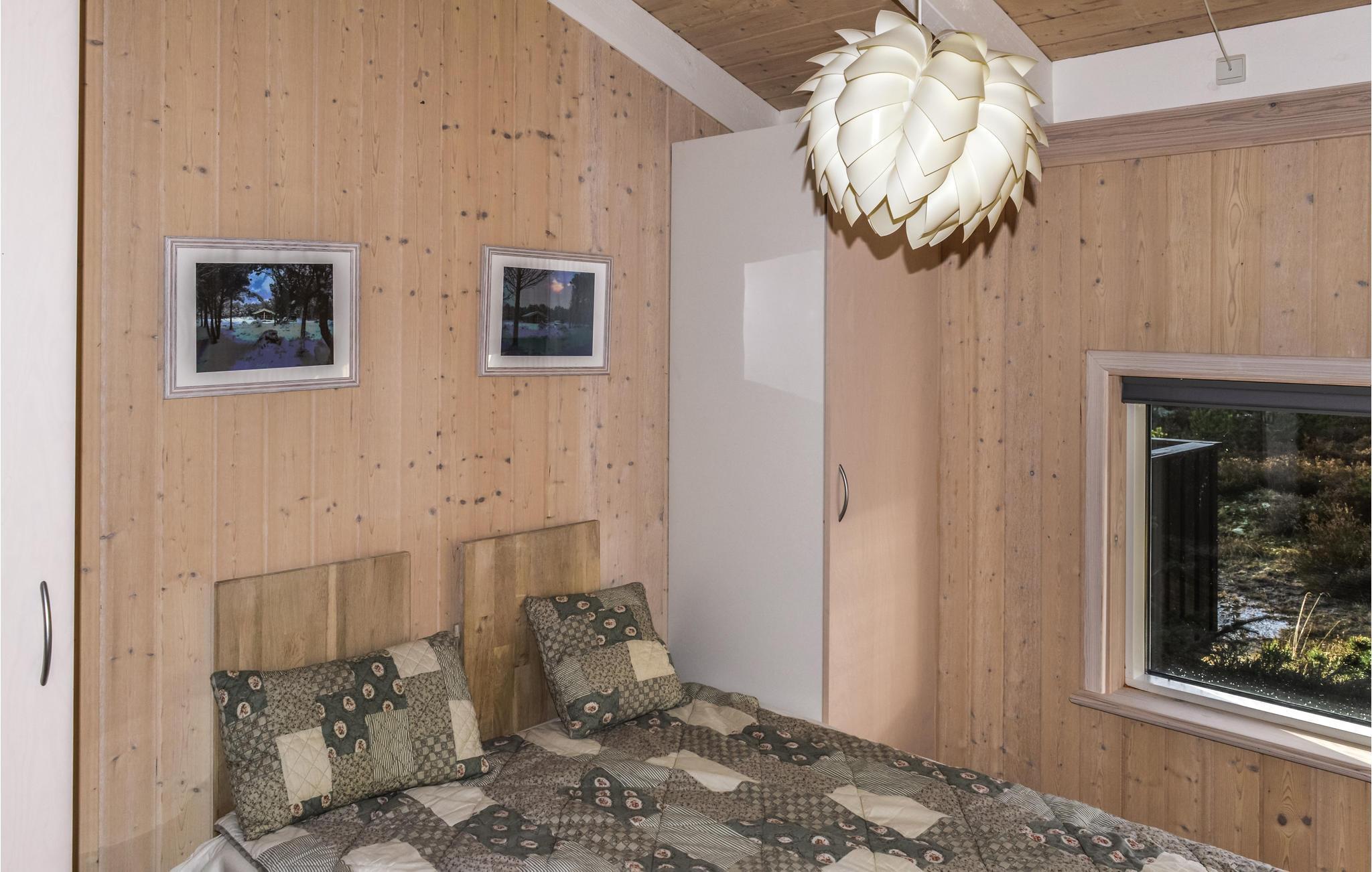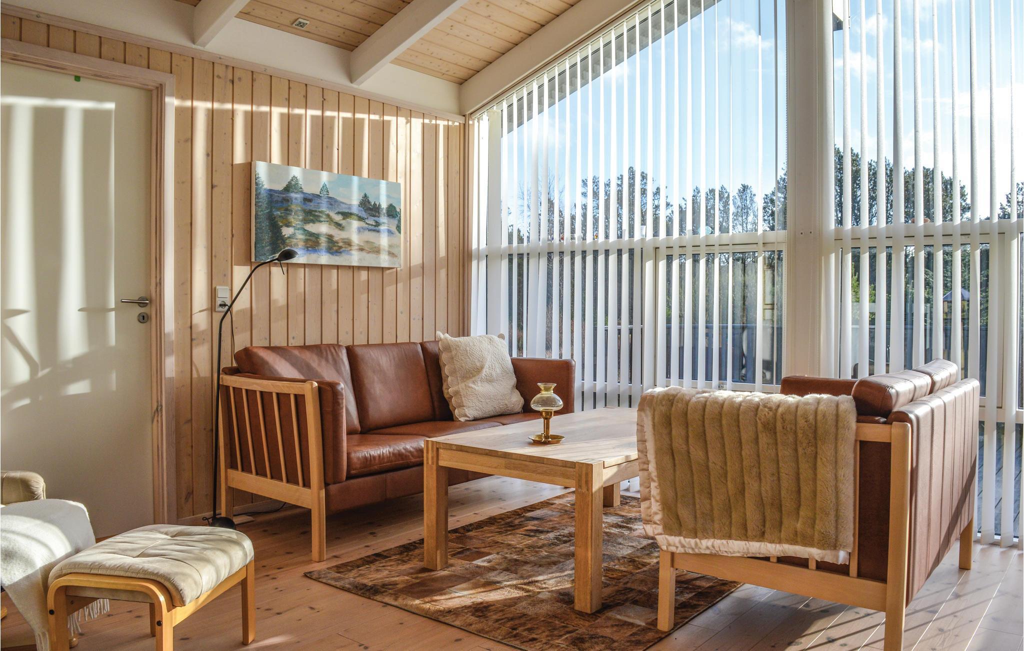 Dette charmerende træhus er indrettet med gode møbler og store vinduespartier, der lader lyset sive ind og giver en masse liv i det store fællesrum. Interiøret er præget af træelementer i farver, og huset har alle de faciliteter, I behøver til en rolig ferie uden de store bekymringer.