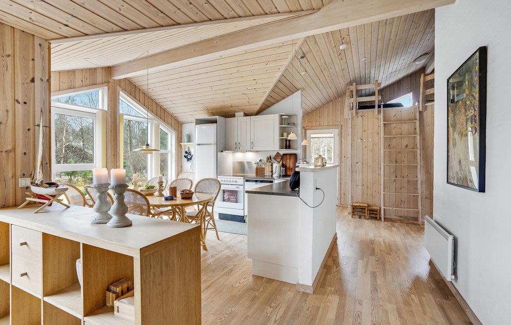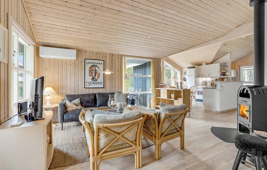 I dejligt naturskønt område lidt vest for den hyggelige havneby Ålbæk, ligger dette velindrettede feriehus. Huset er praktisk indrettet med store soveværelser og to gode badeværelser. I det store, åbne fællesrum kan I glæde jer til de tydelige træelementer i varme farver, og i siddeafdelingen venter jer nogle behagelige møbler, hvor I kan smide fødderne op og læse en god bog til lyden af brændeovnens gnitren.