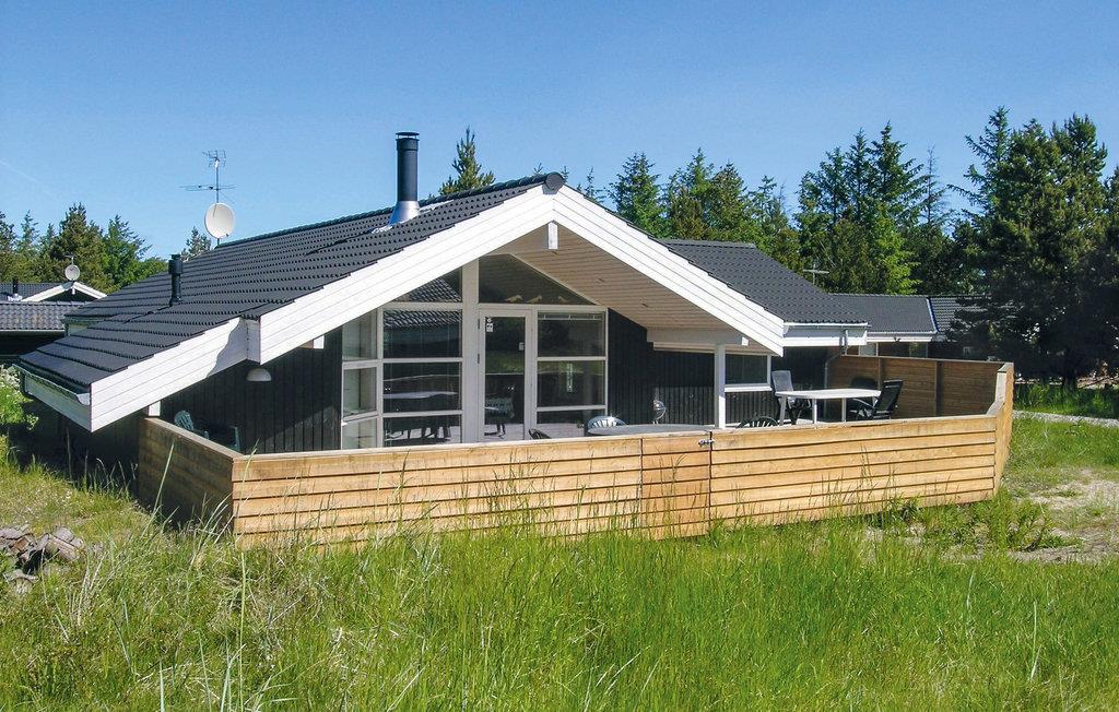 Rummeligt feriehus i Lodskovvad nær Ålbæk med stor terrasse, sauna og spabad, perfekt til familier og udeliv.