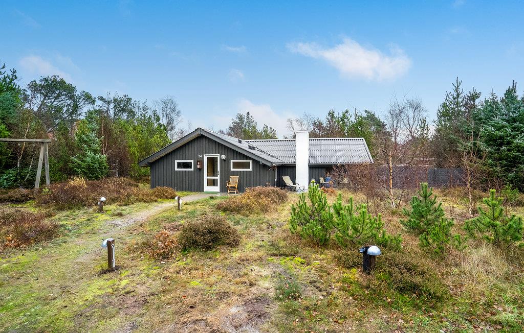 Hyggeligt feriehus nær Ålbæk med store terrasser og plads til samvær i naturskønne omgivelser.