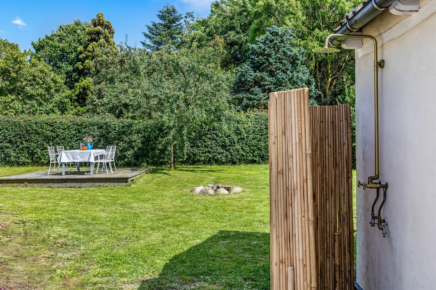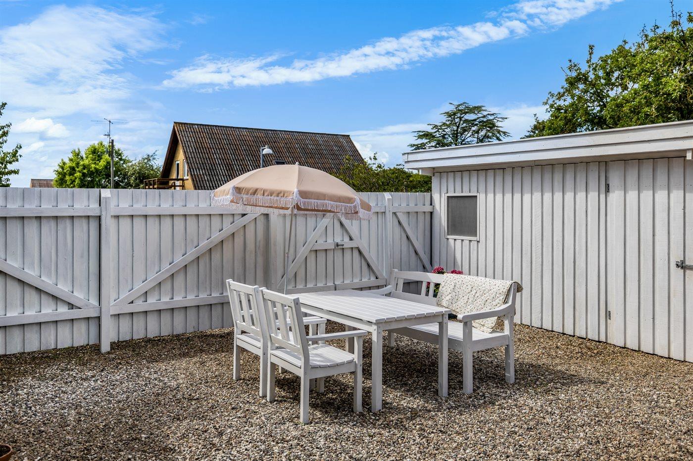Ferieboligen er beliggende på en 788 m² stor havegrund. Der er 125 m til havet. Nærmeste forretning er beliggende i en afstand af 1100 m. Til ferieboligen hører åbent terrasseareal. Der ligger en legeplads i en afstand af 300 m. Bålsted. Udendørs bruser. Grill til rådighed. Parkering ved ferieboligen.
