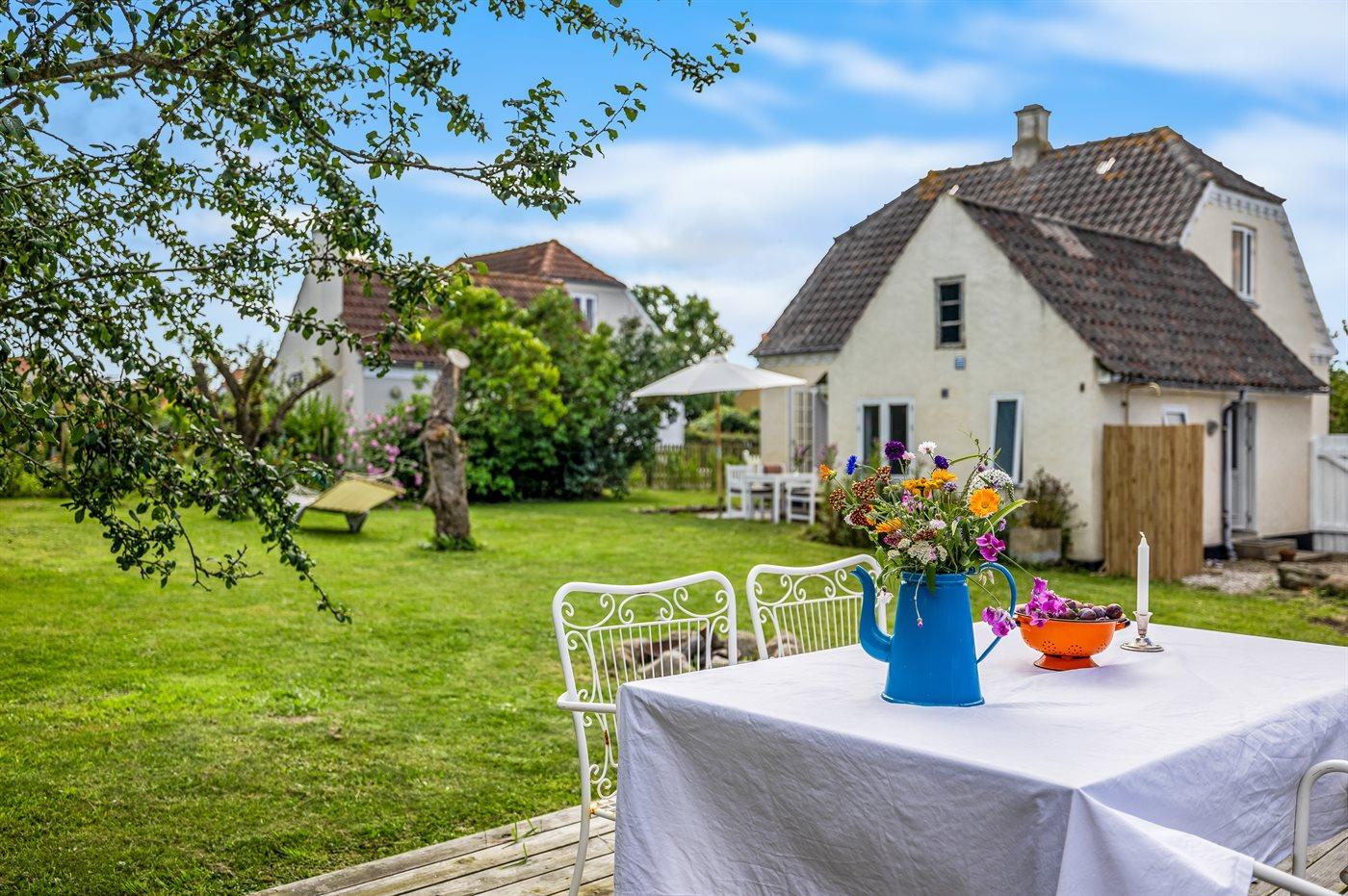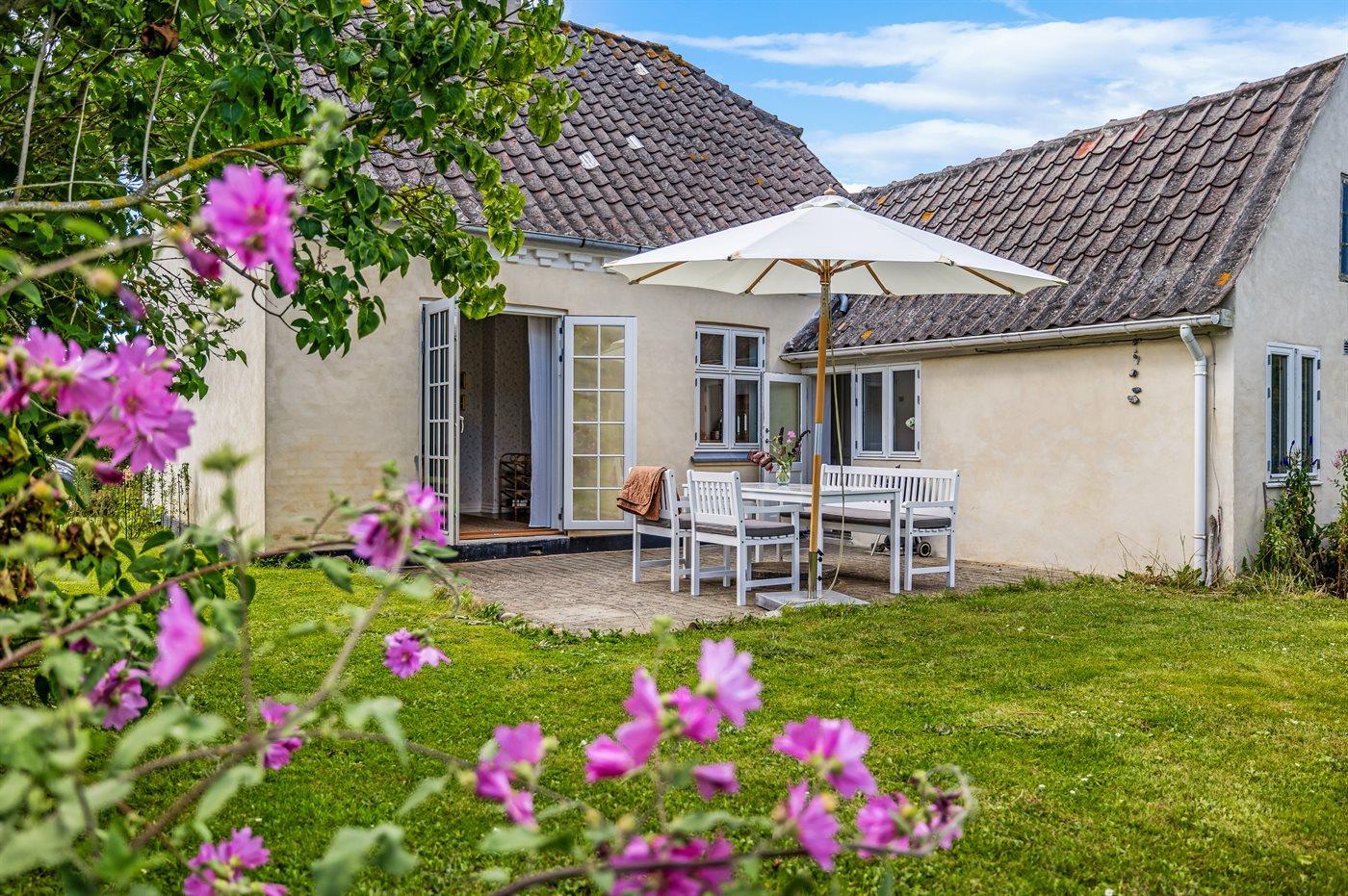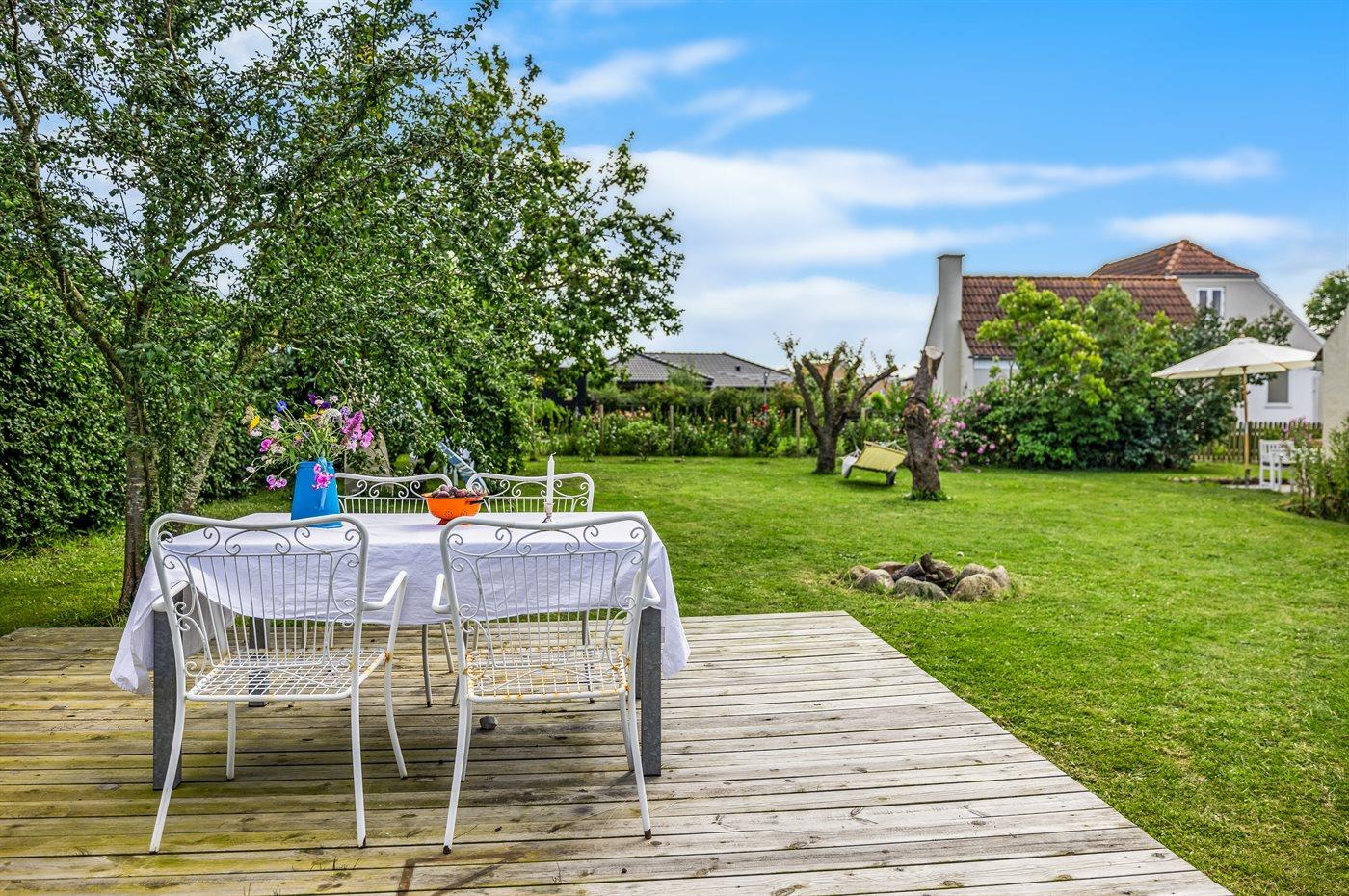 Huset er netop moderniseret og fremstår lyst og hyggeligt. Bag huset er der et terrasseområde, og i haven er der bygget en træterrasse.