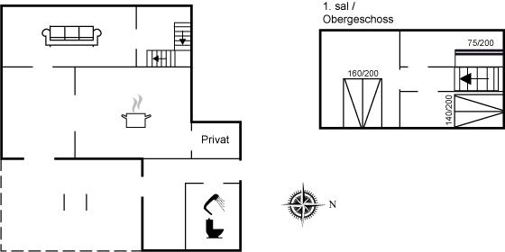 Der er i alt 3 soveværelser. Sovepladserne fordeler sig på: 4 sovepladser i dobbeltsenge. 2 sovepladser i køjeseng. Derudover er der 1 stk. barneseng.
