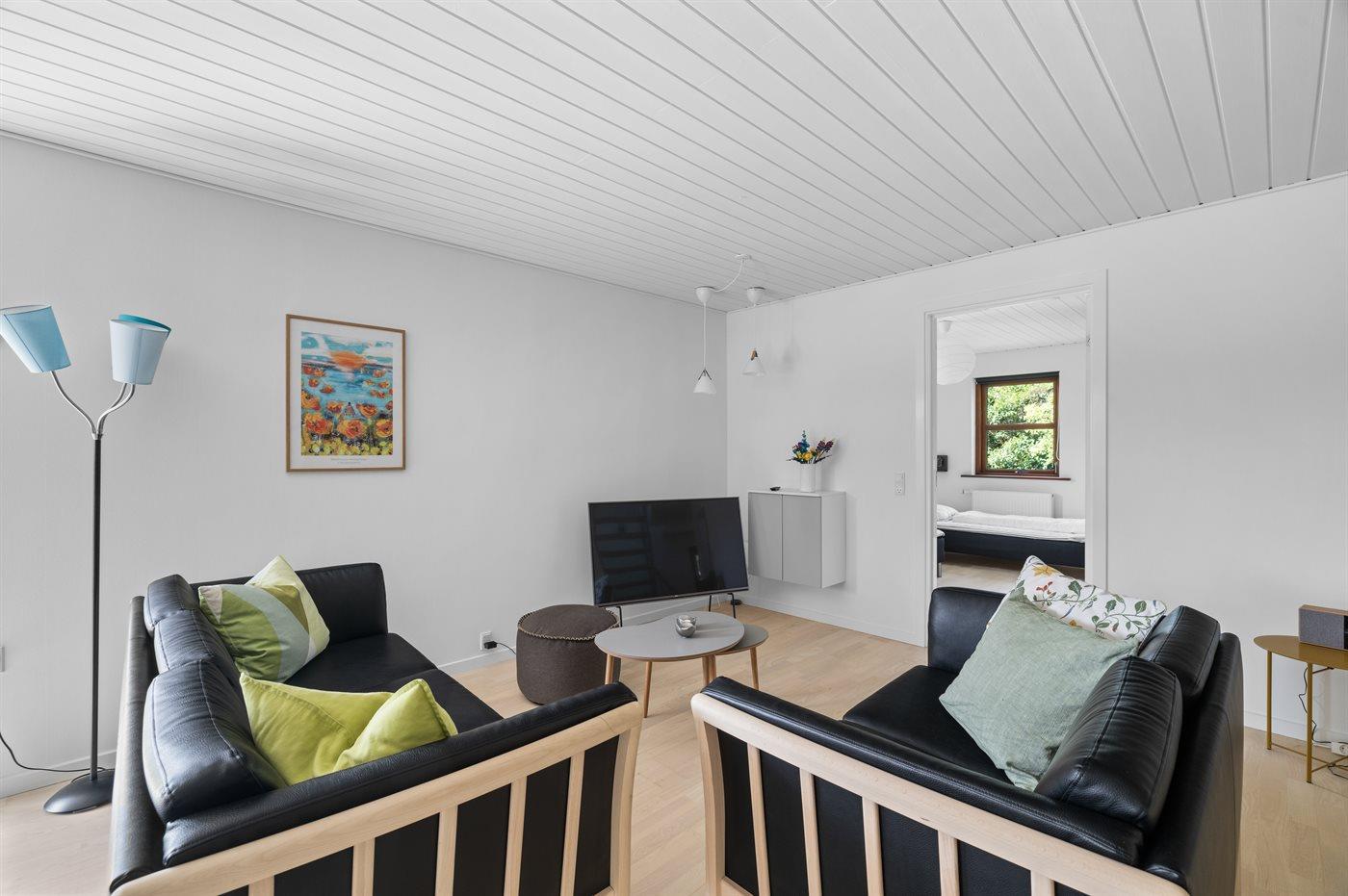 Der er i alt 4 soveværelser. Sovepladserne fordeler sig på: 6 sovepladser i dobbeltsenge. 2 sovepladser i enkeltsenge. Derudover er der 2 stk. barnesenge. Der er gulvvarme i 2 af soveværelserne.