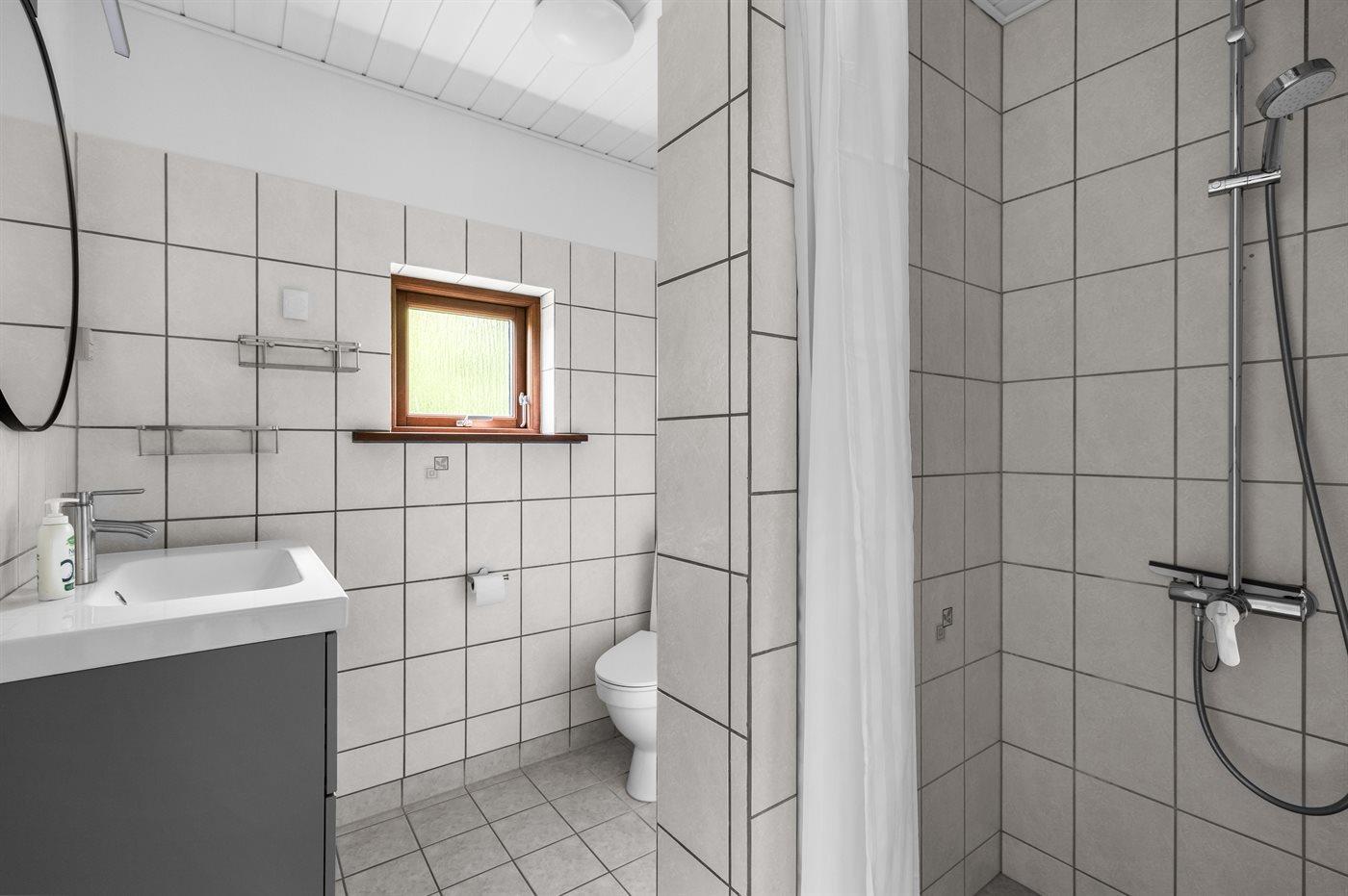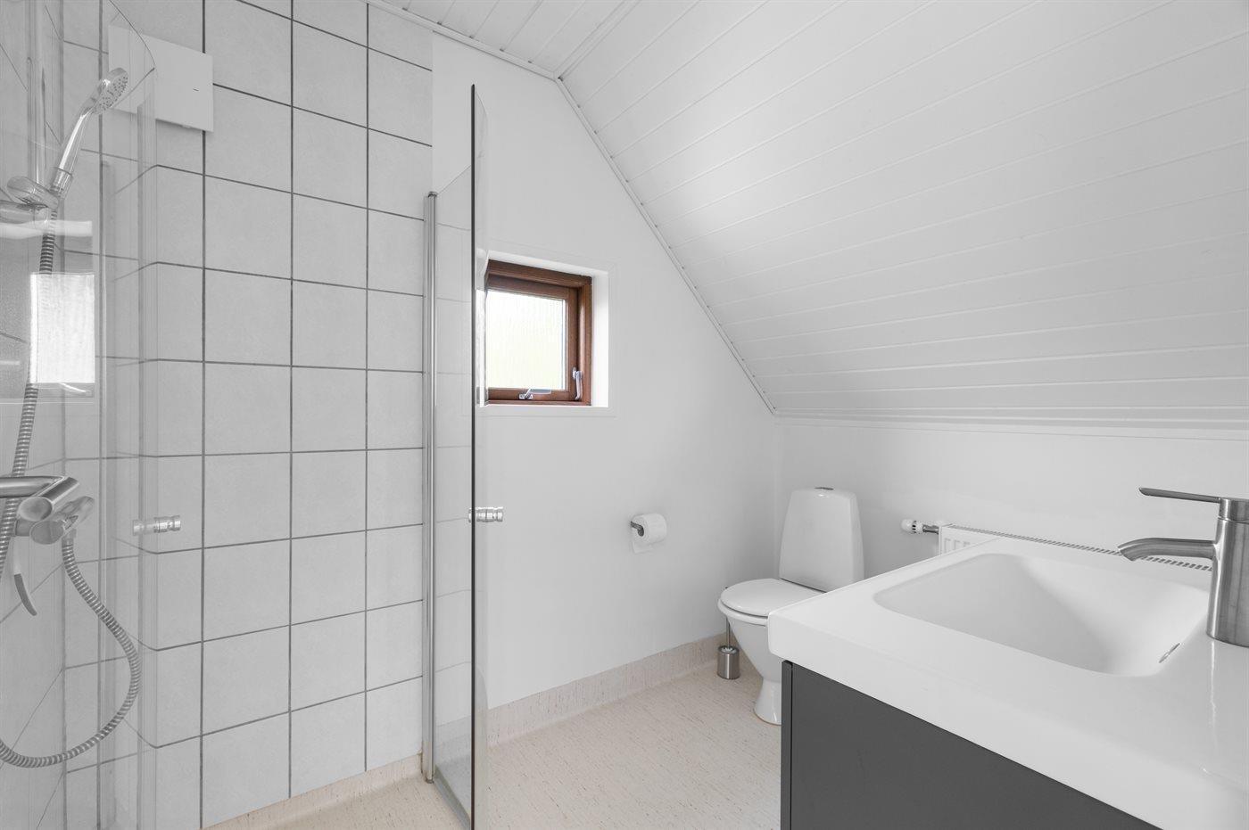Der er 2 badeværelser med bruseniche og 2 toiletter. Der er gulvvarme på 1 badeværelse.