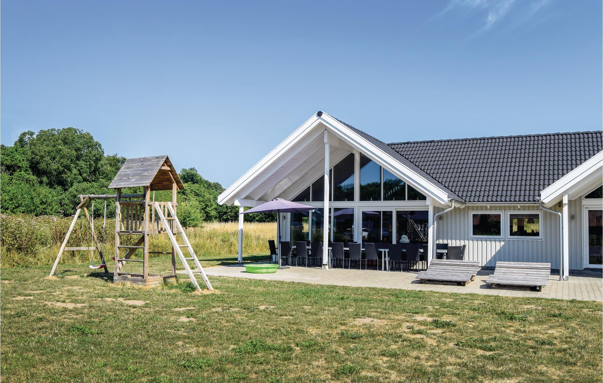 Et fantastisk kvalitetshus af træ i Lohals. Huset er lyst og lækkert indrettet med moderne møbler og mange faciliteter, så man rigtig kan føle sig hjemme. 6 af husets 20 sovepladser er fordelt på 3 hemse med plads til hver 2 personer. Huset indeholder et stort kombineret stue/køkken/alrum, som ligger midt i huset og automatisk bliver jeres samlingssted om madlavningen og hyggelige stunder foran brændeovnens knitrende ild. Aktivitetsrummet ligger ved siden af stuen og har mange aktiviteter. I et af husets 4 badeværelser finder I en 4-personers spabad, hvor man kan i boltre sig i timevis eller I kan nyde varmen i den 3-4 personers sauna. På den ca. 150 kvm. terrasse, hvoraf de ca. 50 er overdækket kan I sidde og slappe af og nyde ferien i fulde drag. På lune sommeraftener er det også skønt at tænde op i grillen og tilberede et lækkert feriemåltid. I hyggelige Lohals har I mulighed for dejlige gåture langs havnen og marinaen.