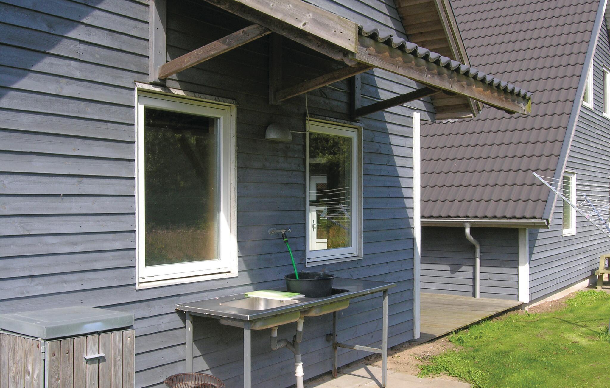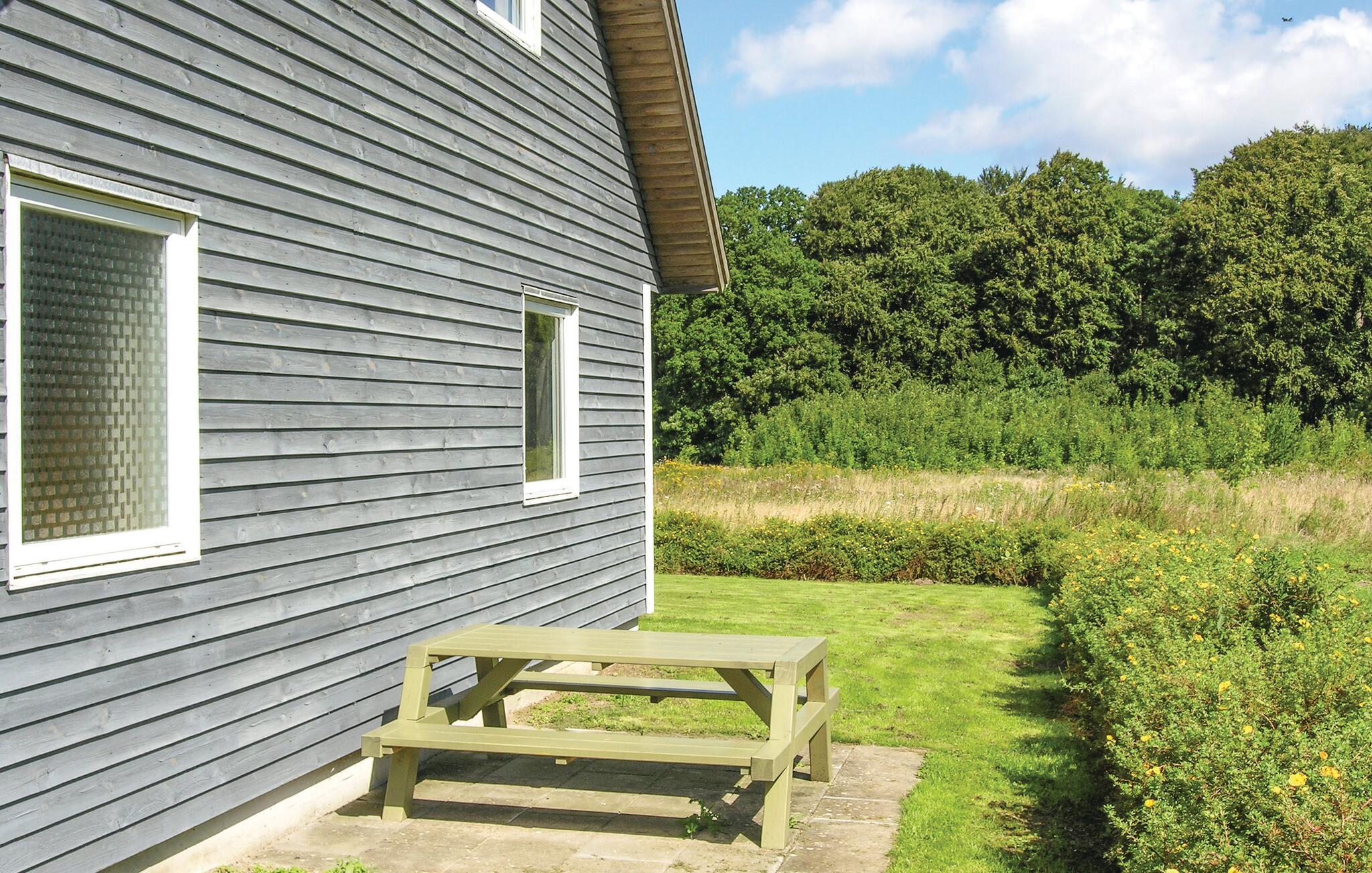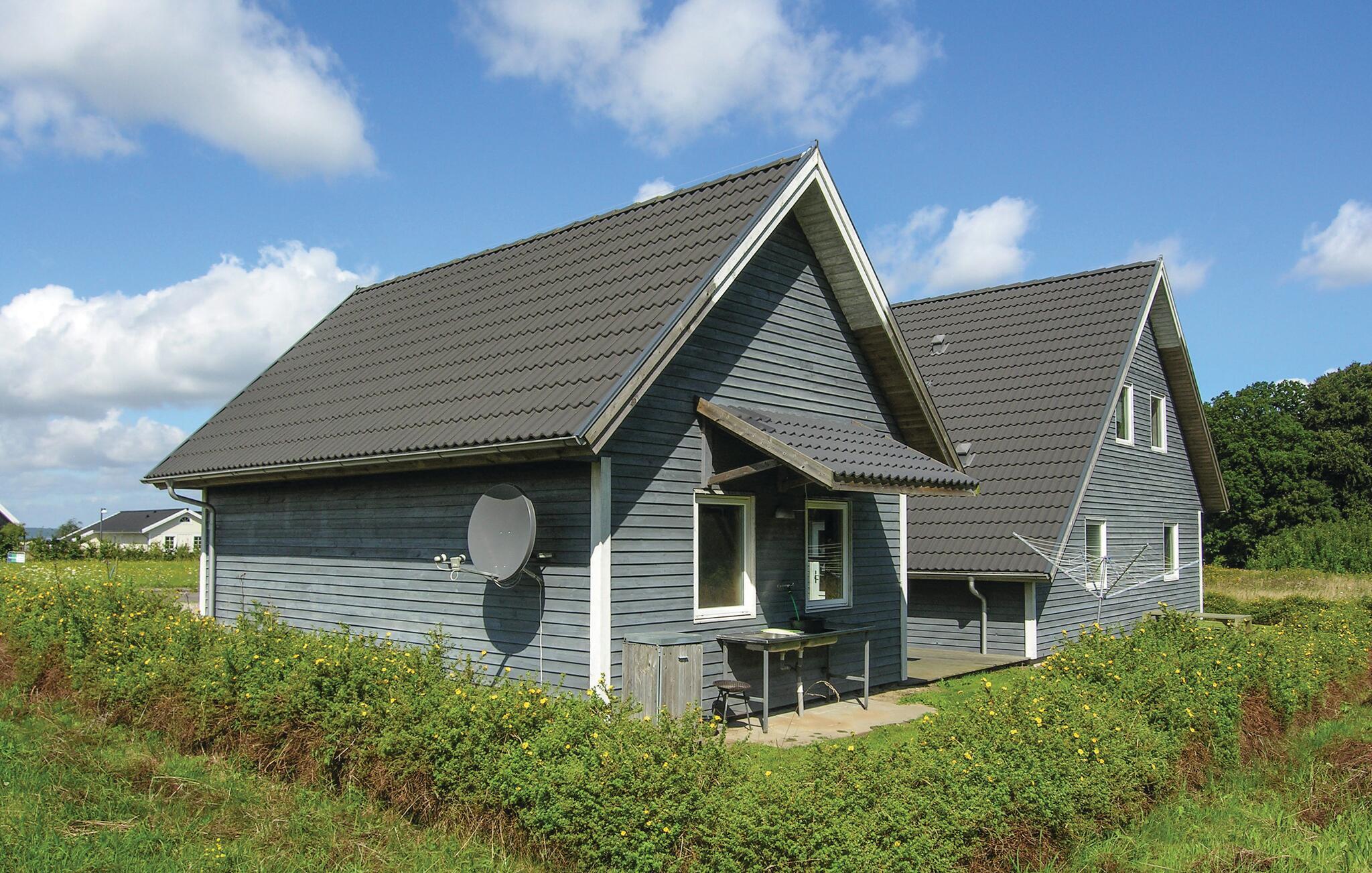 Dette dejlige og rummelige feriehus er opført i træ og ligger med udsigt ud over vandet.