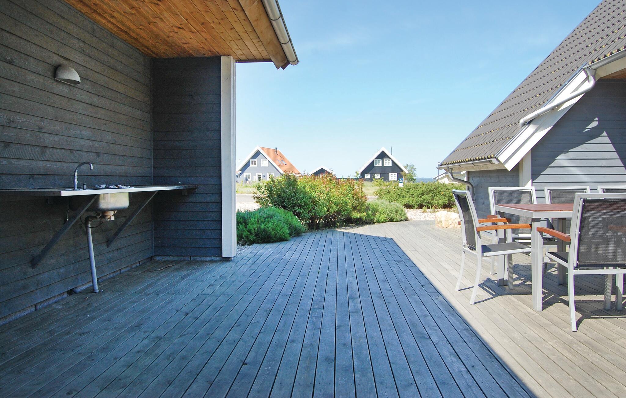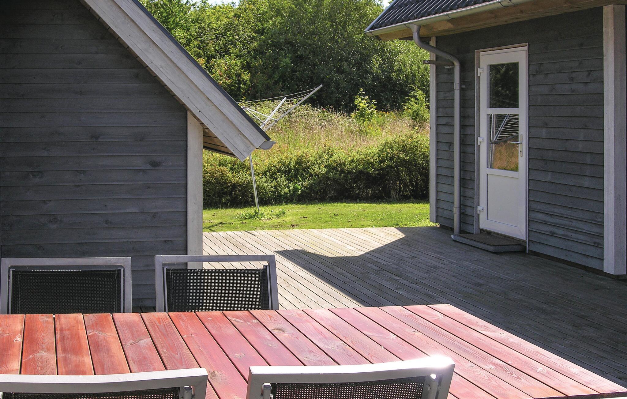 Mellem garagen og hovedbygningen er der en stor terrasse med god plads til hele familien. Huset ligger godt 400 meter fra Lohals Havn, der om sommeren summer af liv med blandt andet levende musik på nogle af de omkringliggende bodegaer og restauranter.