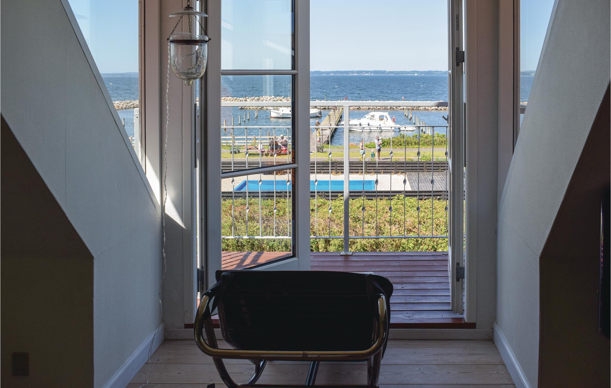 Blot et stenkast fra Lohals Havn ligger dette hyggelige feriehus med en fantastisk udsigt over lystbådehavnen i Lohals. Huset er lyst og venligt indrettet med trægulve i opholdsrum samt på 1. sal og klinker i resten af huset. Fra husets soverum i stueplan er der opgang til hems med to sovemuligheder. 1. sal er et stort rum med opholdsstue, hvor væg deler rummet og i den ene ende af rummet står der en dobbeltseng. Især fra feriehusets altan er der en fantastisk udsigt over vandet og Lohals Havn, der om sommeren summer af liv med blandt andet levende musik på nogle af de omkringliggende bodegaer og restauranter. Nyd evt. en dejlig gåtur langs havnen og marinaen eller få dig en kæmpe gammeldags isvaffel mens du kigger på sommerens sprudlende havneliv.