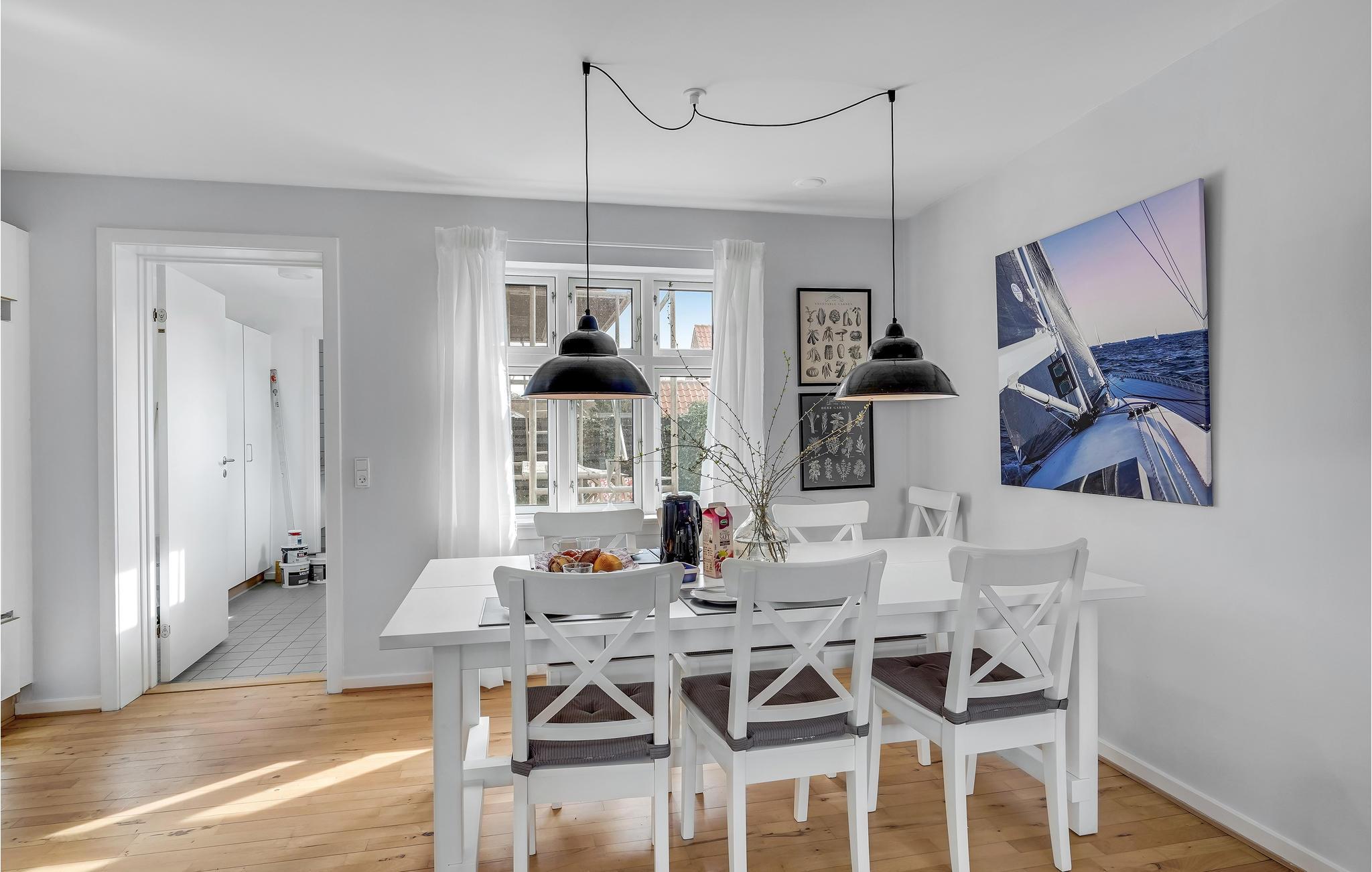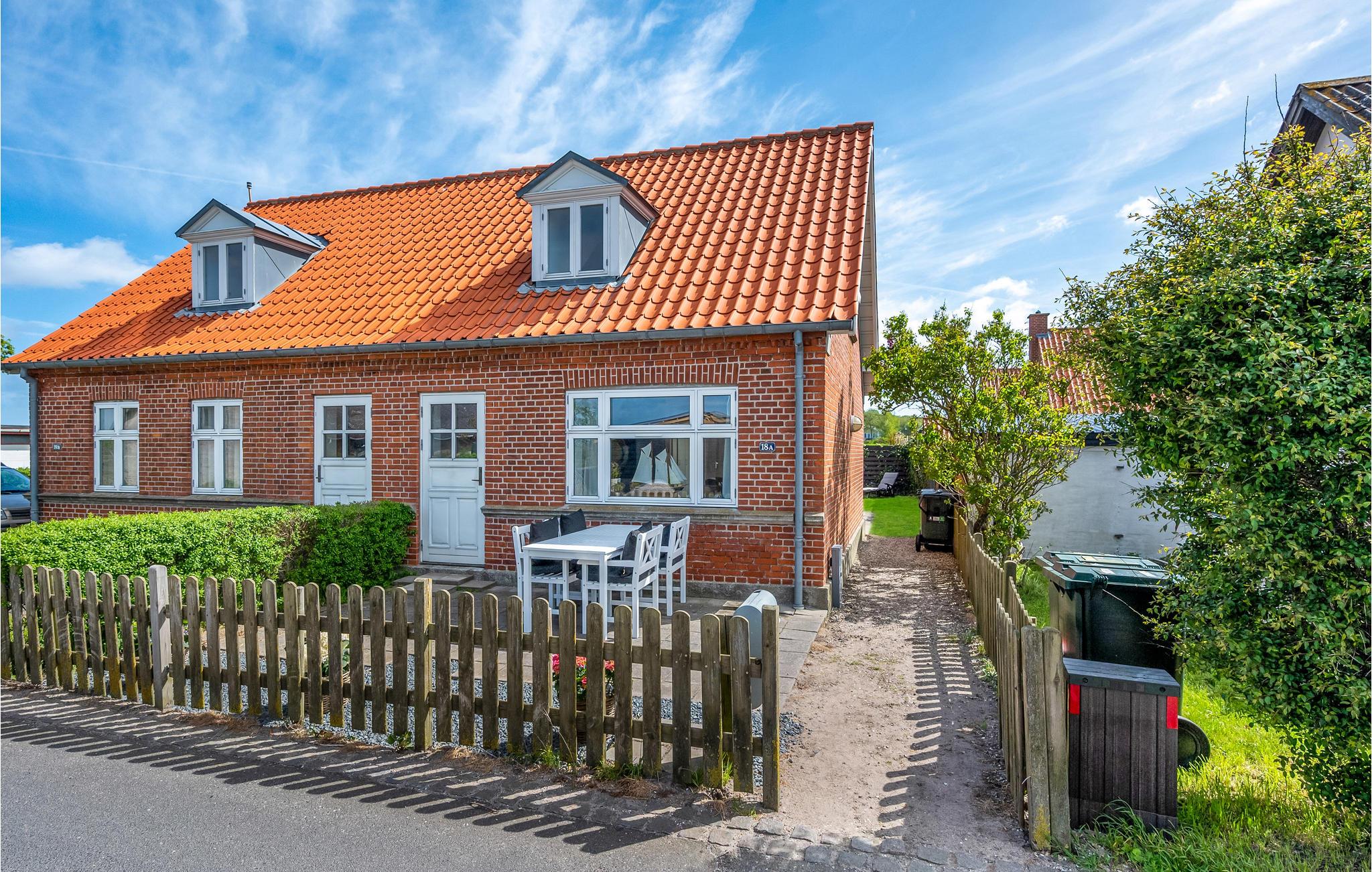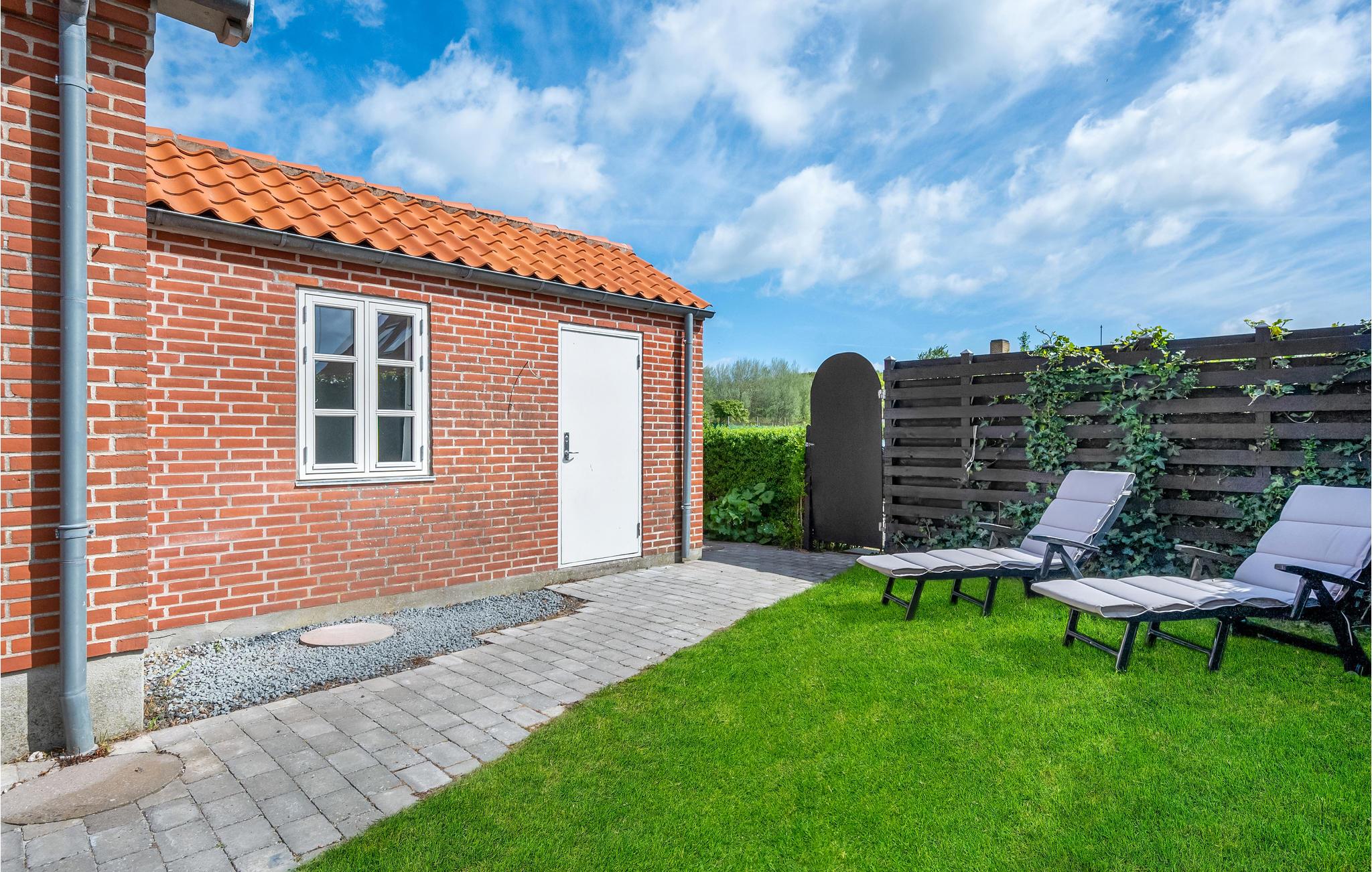 Til huset hører en dejlig, åben terrasse, som er udstyret med komfortable havemøbler, herunder liggestole til solbadning. Her kan I sidde og nyde den friske luft, og om aftenen kan I grille. Kun 100 meter adskiller jer fra vandet, hvor I kan hoppe i bølgen blå eller prøve fiskelykken.