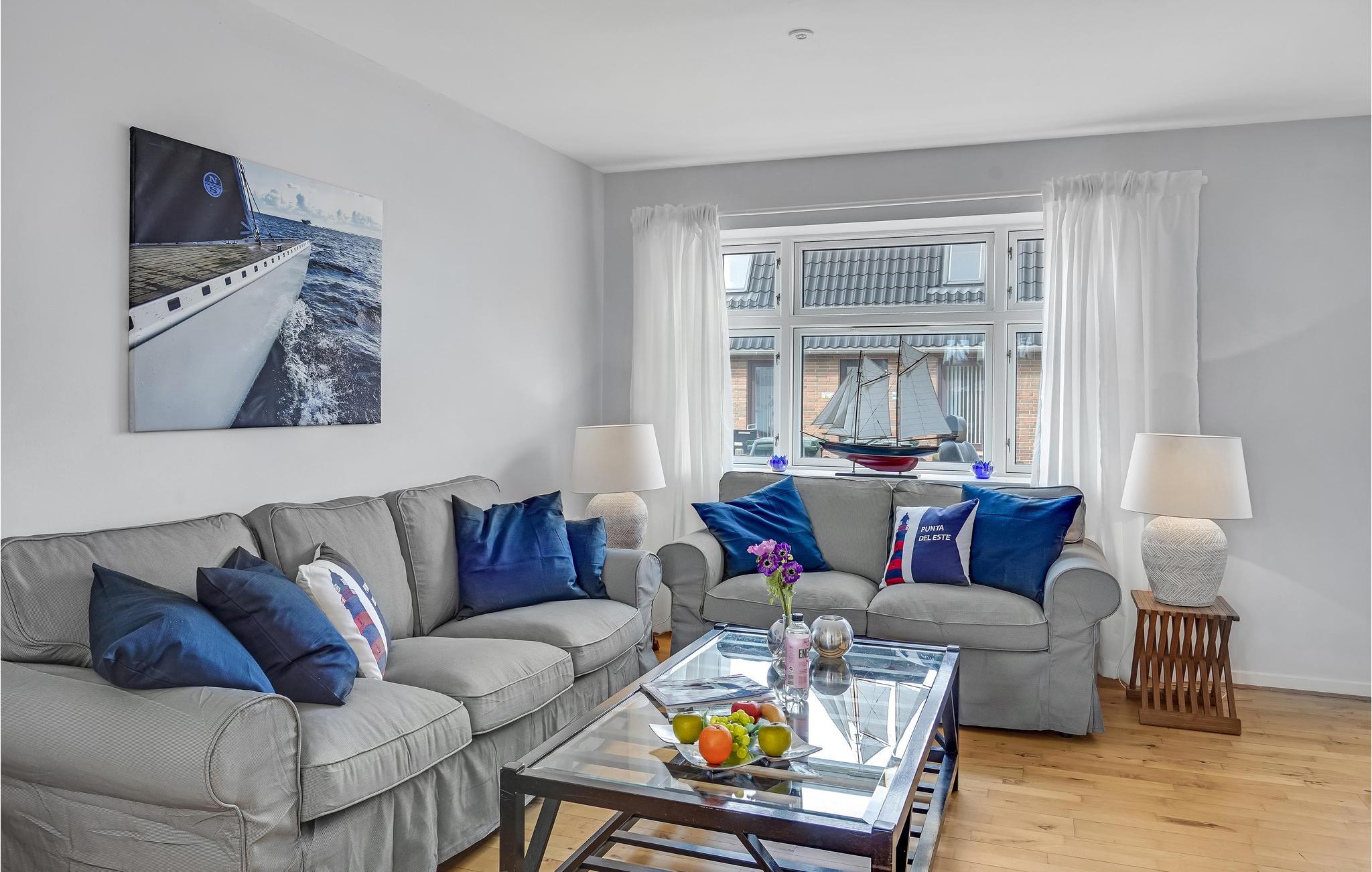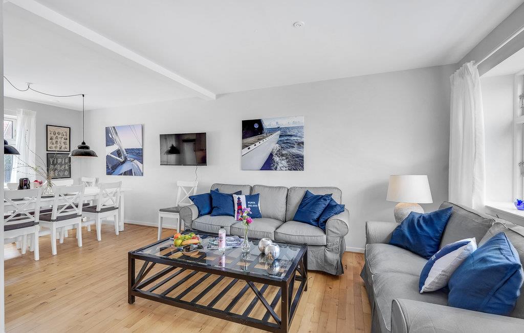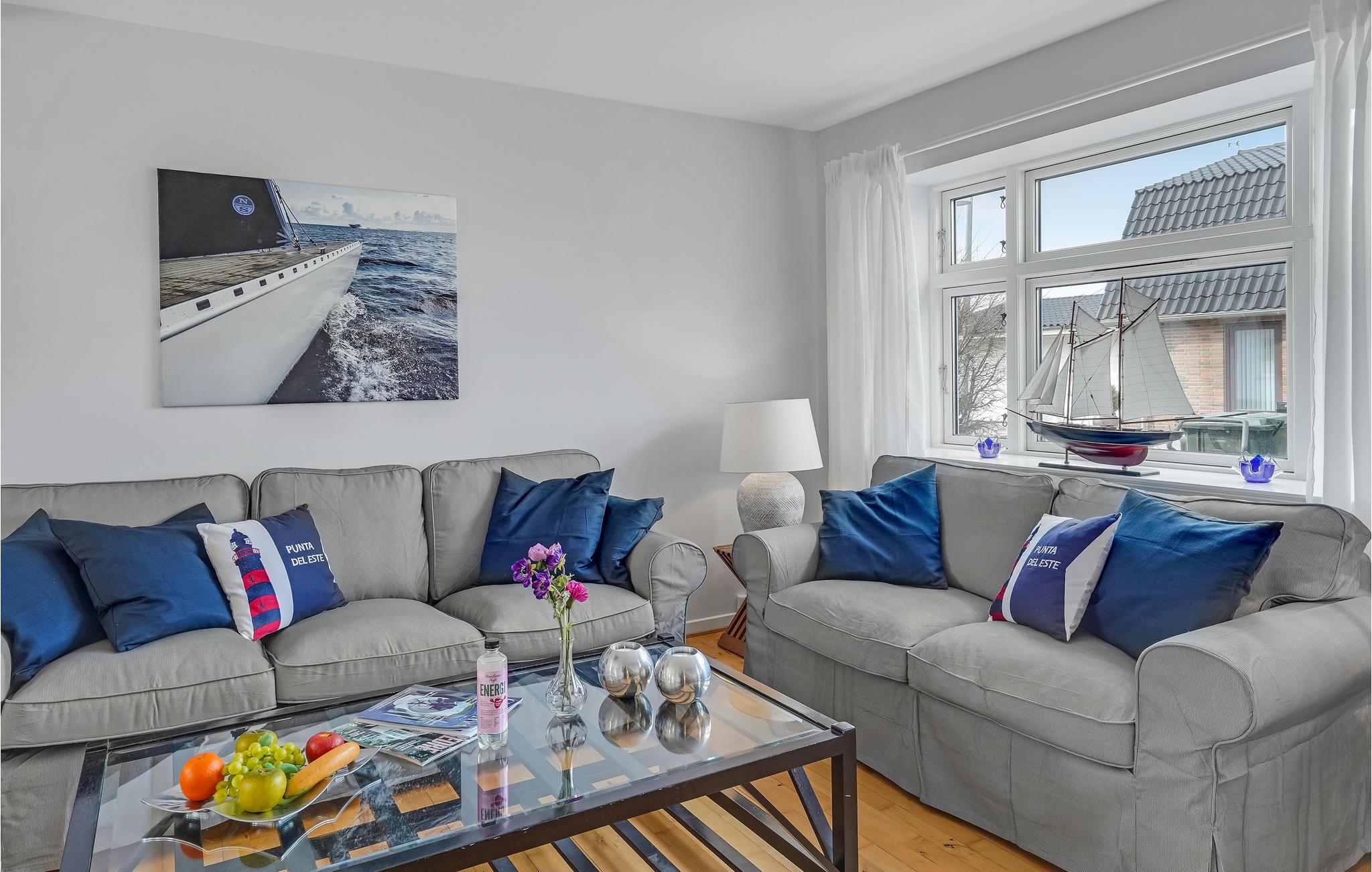 Velkommen til øen og dette indbydende feriehus lige ved vandet i Lohals. Huset byder på store, lyse rum, som er komfortabelt indrettede i en behagelig kombination af blå, hvide og grå farver. Der er havudsigt fra første sal. To højdepunkter ved huset er det rummelige, veludstyrede køkken, hvor flere gæster kan tilberede lækre feriemåltider sammen, og opholdsstuen med bløde møbler, hvor I kan sidde og hyggesnakke, se fjernsyn eller spille kort og brætspil.