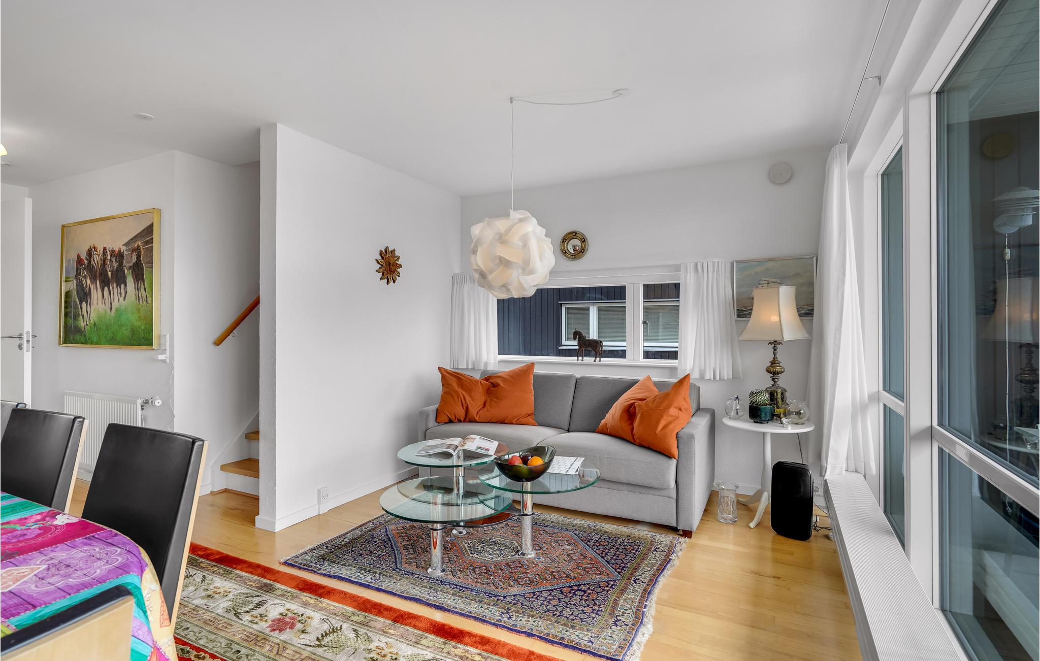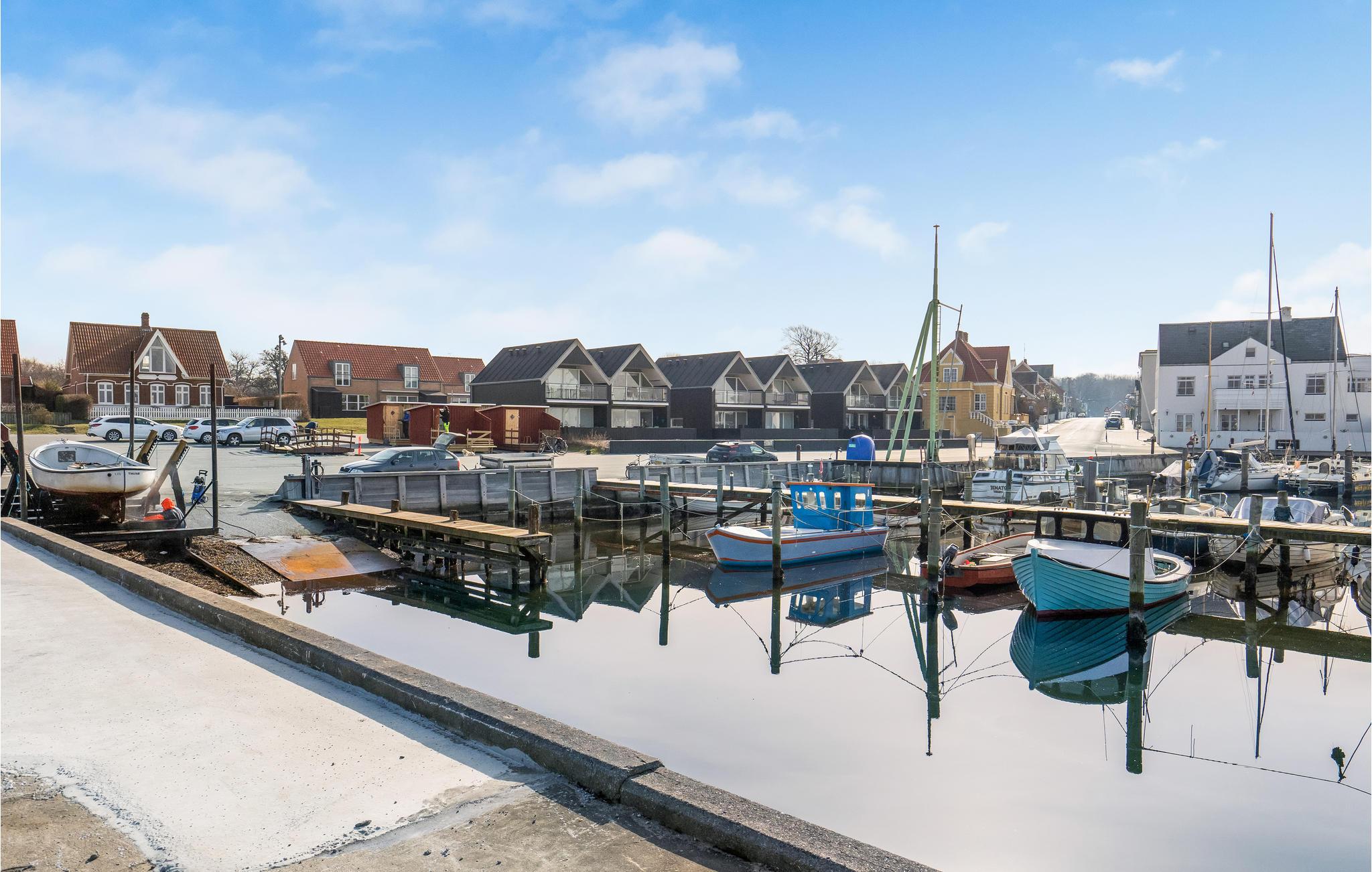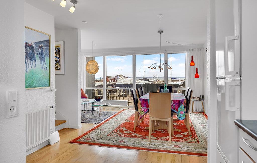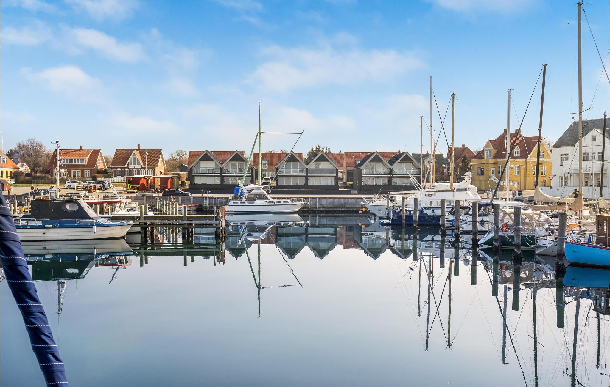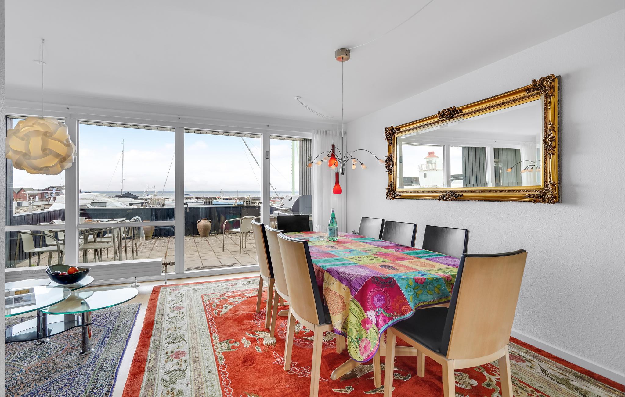 I får en fortrinlig beliggenhed i første række til vandet med dette fine, lille rækkehus, som er godt og moderne udstyret. Her kan I fylde dagene med hyggelige aktiviteter og hele tiden nyde udsigten til livet på havnen imens. Efter en lang dag på farten kan I sætte jer til rette rundt om spisebordet og senere læne jer tilbage i stuens bløde møbler med vandet som smuk kulisse. Begynd sommerdagene på terrassen med morgenmad, mens I lægger en plan for dagens aktiviteter. Når I vender hjem fra dagens eventyr, er det også hyggeligt at sidde her med grillretter og et glas vin.