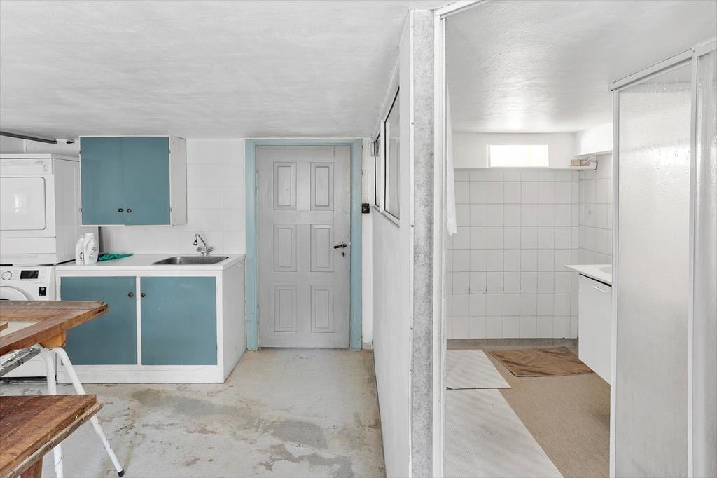 I kælderen findes både bad og bryggers med vaskesøjle.