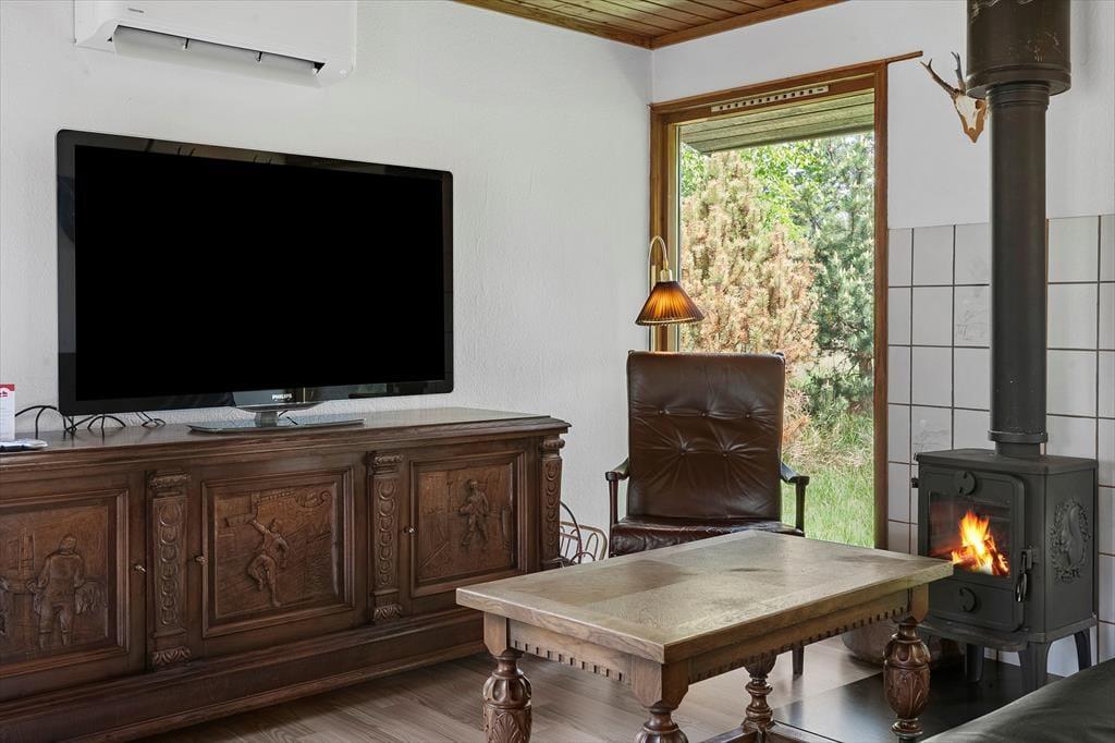 Sommerhuset indeholder en entre, 3 soveværelser, med dobbeltseng i 2 af soveværelserne og 1 enkeltmandsseng i det 3 soveværelse. Dernæst er der et badeværelse, med wc, bruser og vaskemaskine. Derudover er der et køkken, med spiseområde og sofaområde. I stuen er der en ekstra soveplads. Fra køkkenet er der udgang til husets terrasse.
