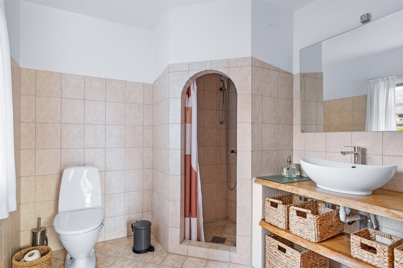 Der er 1 badeværelse med bruseniche og 1 toilet.. Der er gulvvarme på 1 badeværelse.
