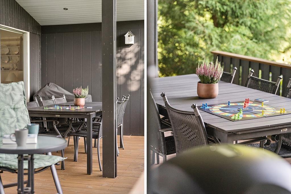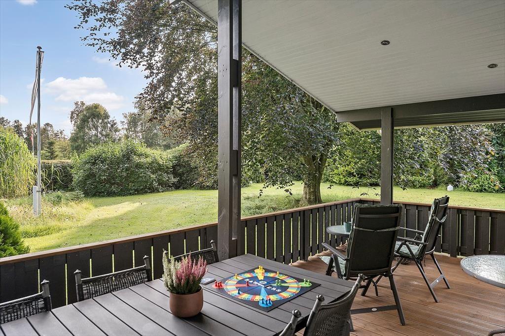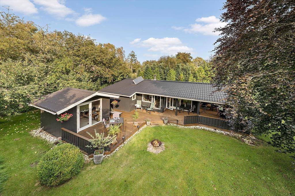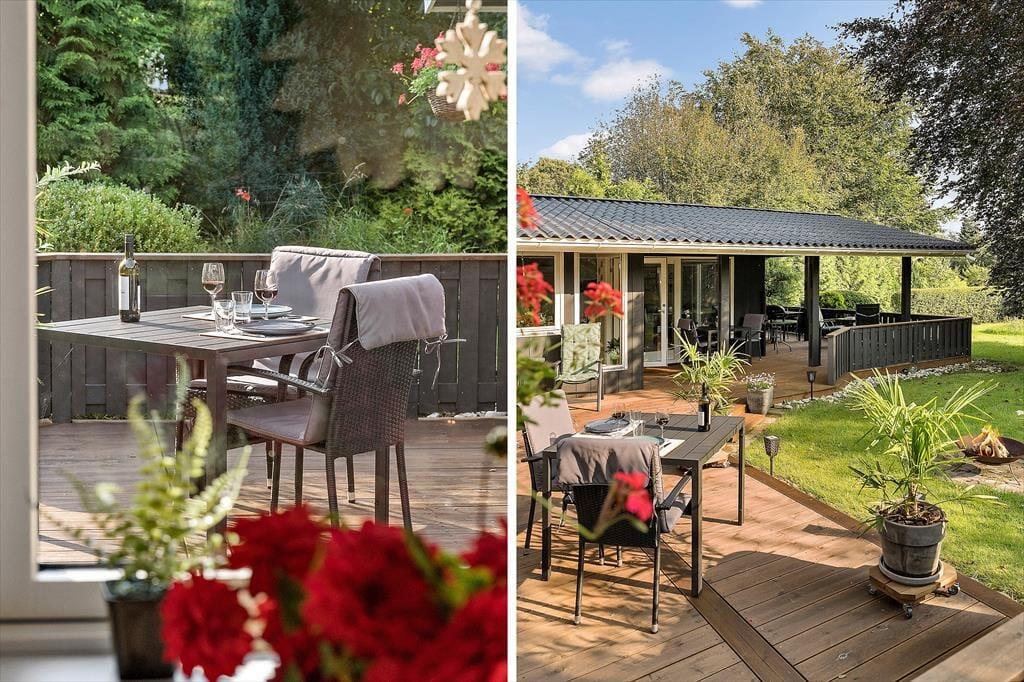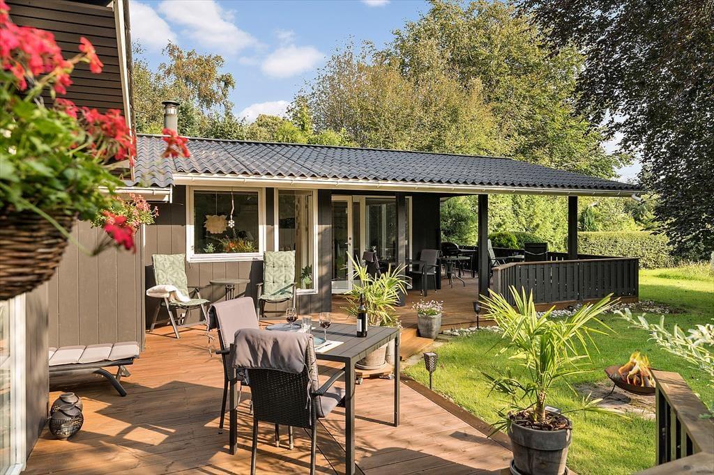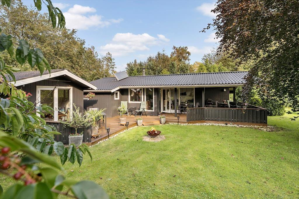 Med sine 1201 m2 er sommerhusets grund ganske stor, og den ligger helt roligt for enden af en lille sidevej i Fjordparken. Vil I spille havespil eller lege fangeleg, kan I give den gas på græsplænen, og ellers er der masser af plads til at drive den af på den 72 m2 store træterrasse, der byder på både åbne og overdækkede arealer.