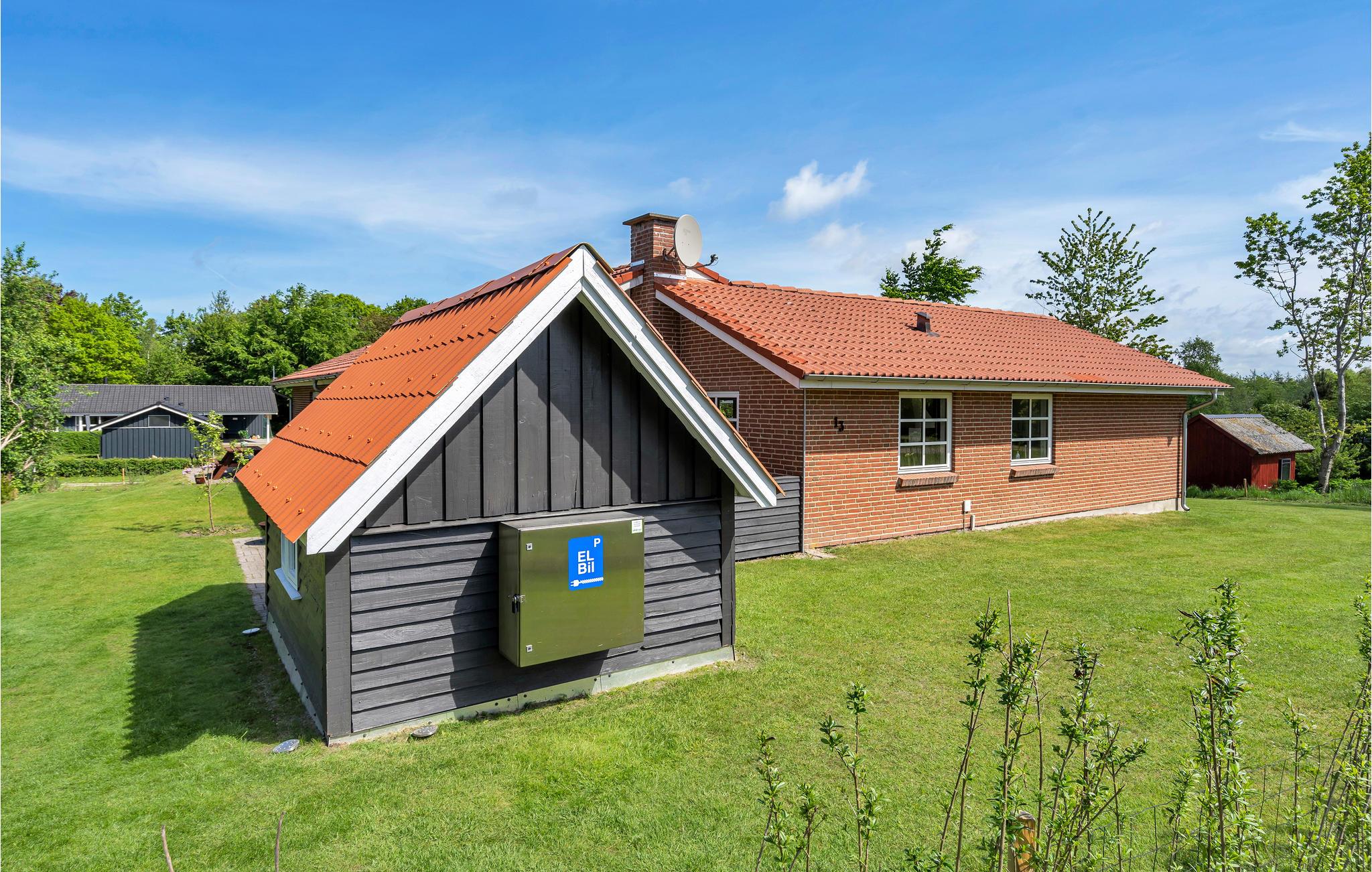 Hyggeligt sommerhus ved Lovns Strand med sauna, aktivitetsrum og oplader til elbil, tæt på fjorden og naturen.
