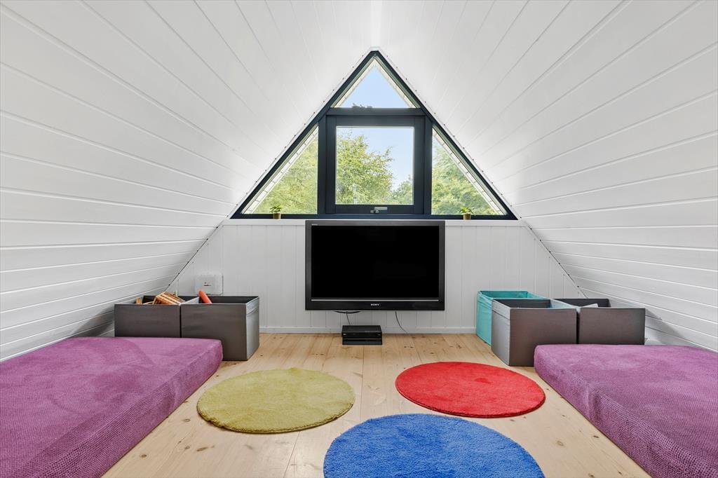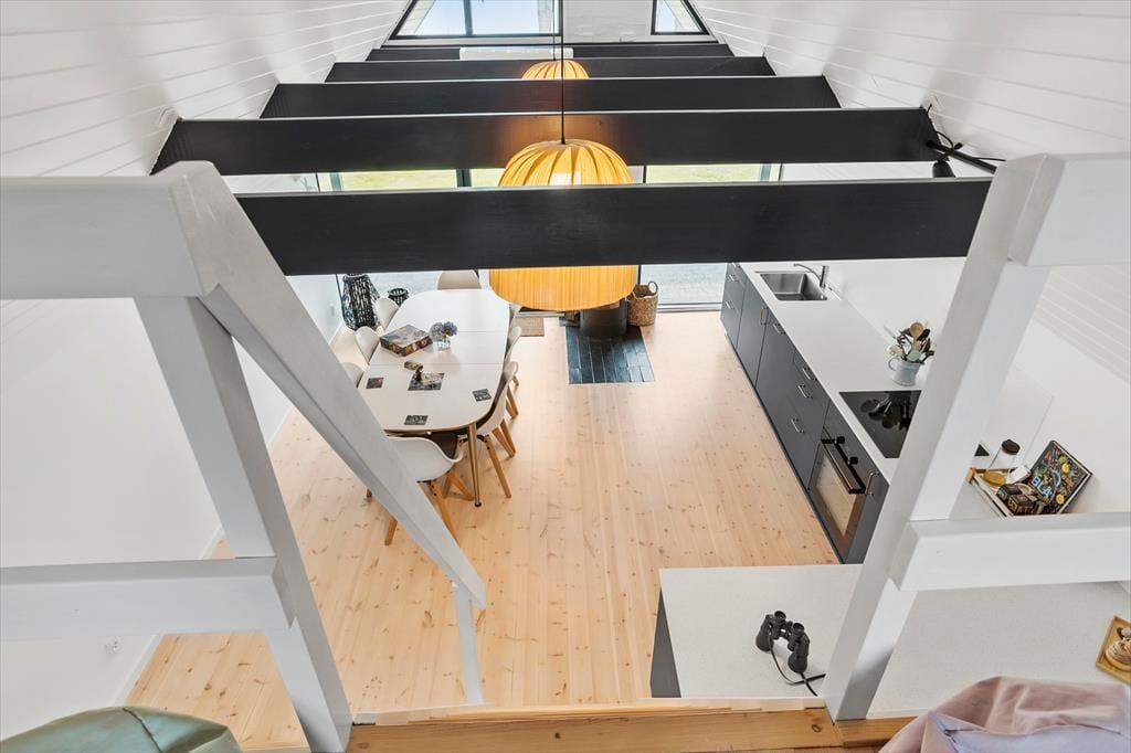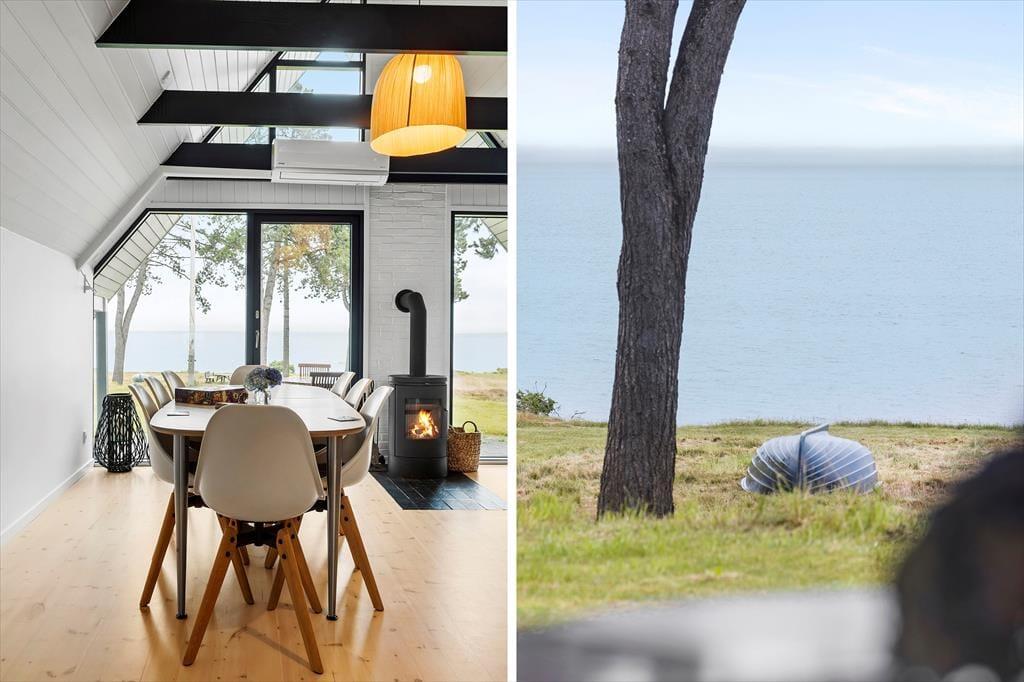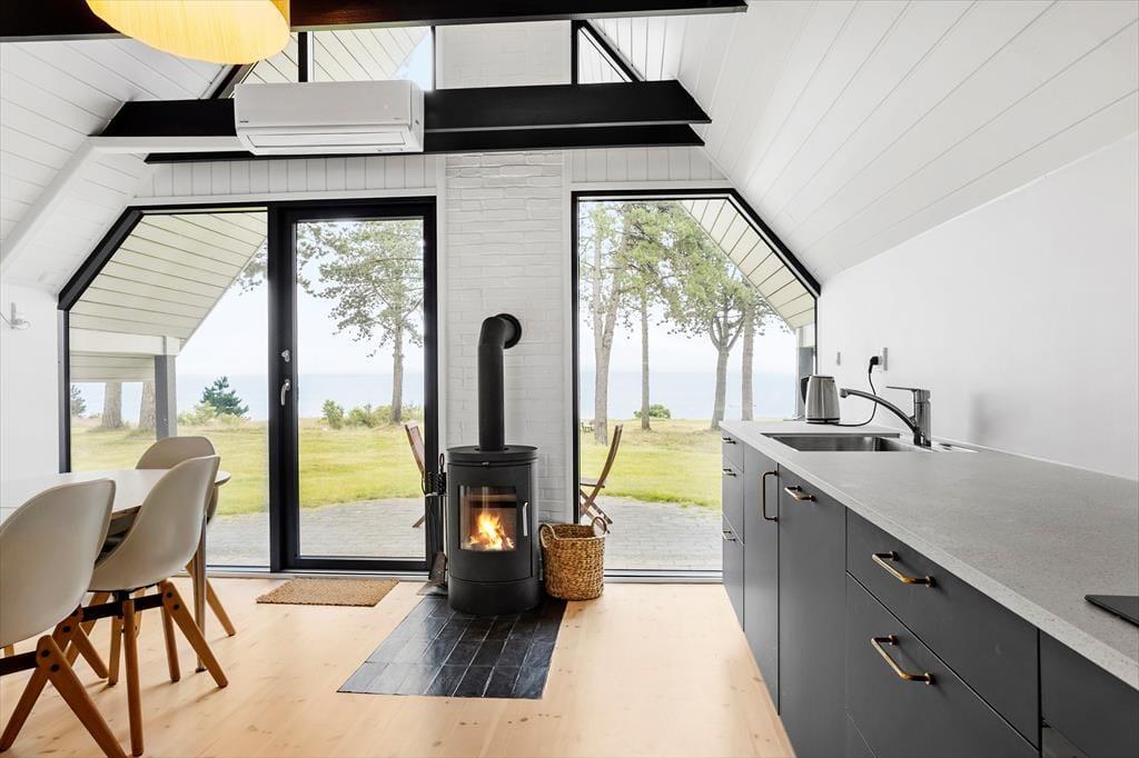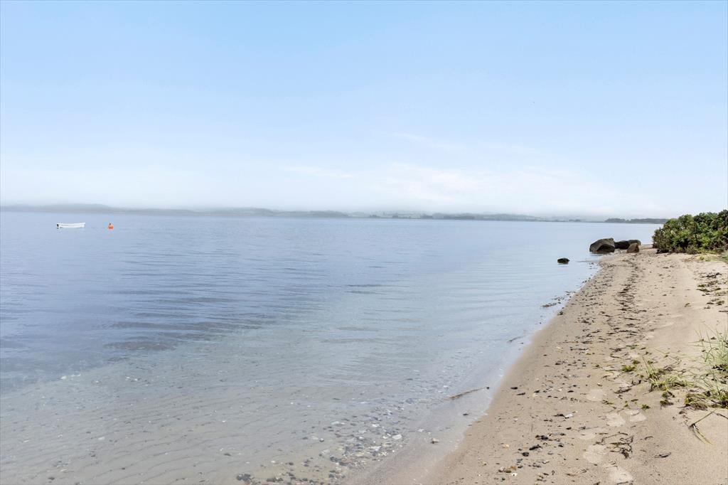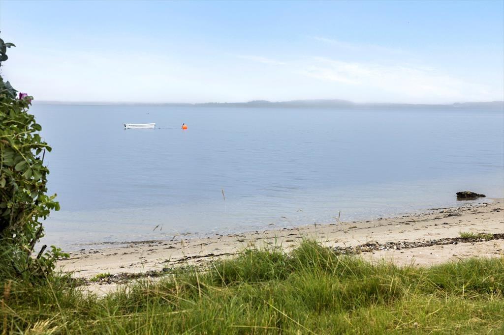 Sommerhuset ligger bare 70 meter fra kysten, så hvis du drømmer om en rigtig strandferie, har du kig på det helt rette sted. Efter en vellykket modernisering i 2024 har alle rum en indbydende indretning og en lys atmosfære. Planløsningen er gennemtænkt, så tre soveværelser og et badeværelse ligger samlet i den ene ende af huset, mens køkken og stue er i åben forbindelse, så både dagslyset og hyggesnakken har fri passage. En havestue forbinder soveafsnittet og opholdsafdelingen, så den er nem at tage i brug, hvis du gerne vil sidde i nærkontakt med haven – og fra køkkenet fører en trappe op til hemsen, der med madrasser, legetøj og spillekonsol hurtigt kan blive børnenes yndlingssted inden døre. Fjordudsigten kan du nyde fra flere af rummene, men den er nu allerskønnest fra køkkenet takket være de store glaspartier i gavlen. Tænk, hvor skønt det bliver at sidde her med en kop morgenkaffe, mens solen slår smut på det blanke vand!