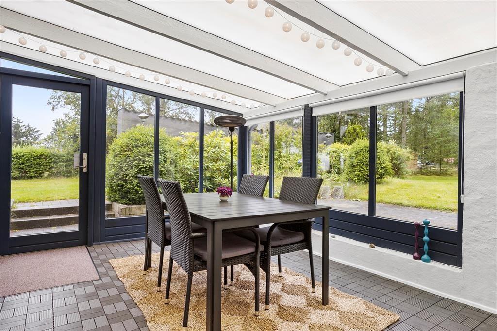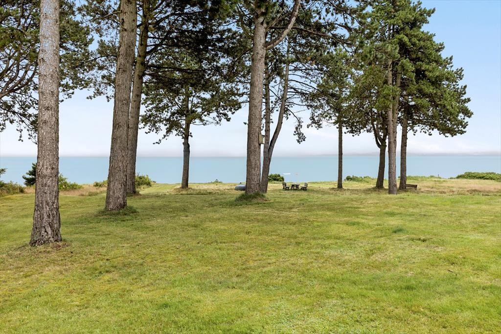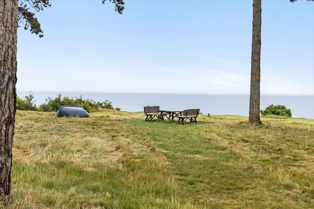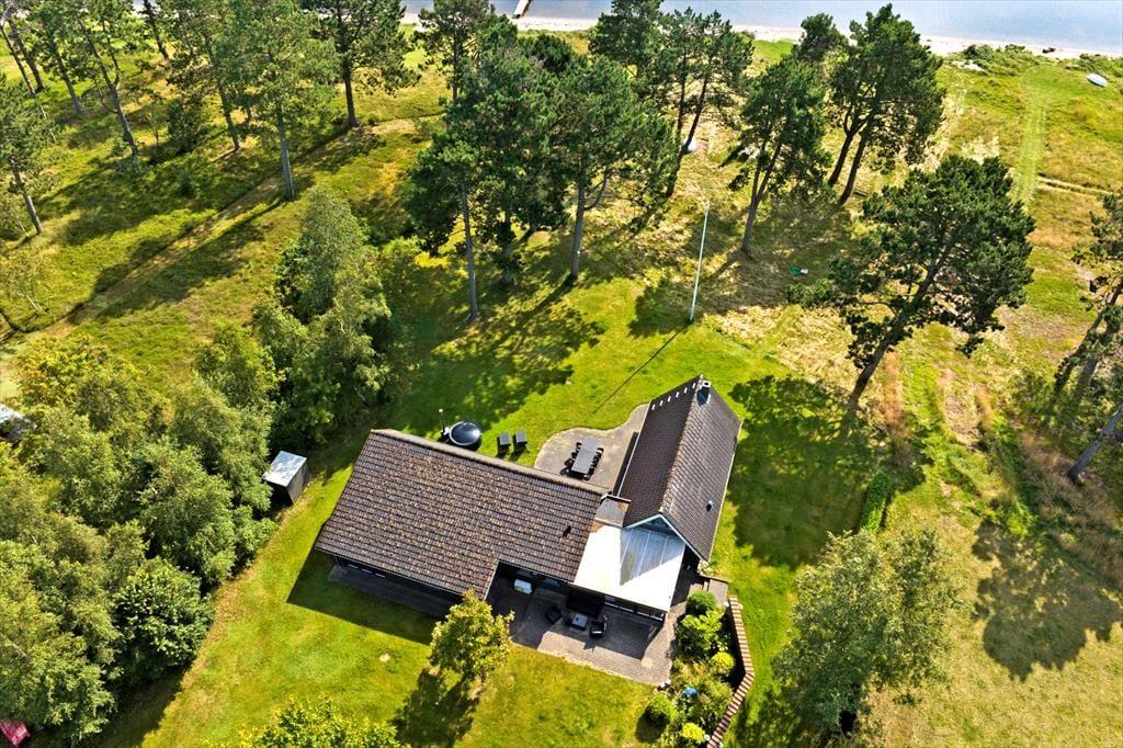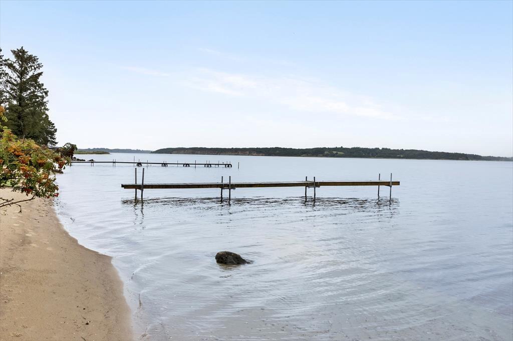 Sommerhusets naturgrund er med sine 5968 m2 imponerende stor, og den fører lige ned til vandet, så du kommer til at holde ferie i det skønneste landskab og kan følge med i, hvordan fjorden ændrer udseende i takt med vejrudsigten og tidspunktet på dagen. Start dagen med en dukkert – og hvis du ikke vil blive på stranden for at tørre i solen, kan du være tilbage ved huset, inden morgenkaffen er klar. Fra både soveværelserne, udestuen og køkkenet har du direkte adgang til det dejlige terrassemiljø, der breder sig rundt om huset. Med andre ord kan du smutte ud, så snart vejrguderne smiler, og der er flere skønne opholdspladser at vælge imellem, hvis du vil sætte dig med avisen eller spise frokost med dine kære. Om aftenen har I mulighed for at grille, og hvis I vil afslutte dagen på helt tilbagelænet vis, kan I gå i vildmarksbad, mens stjernerne begynde at kigge frem på himlen.