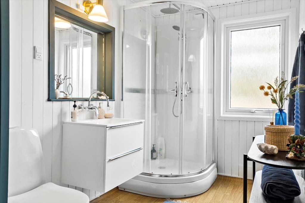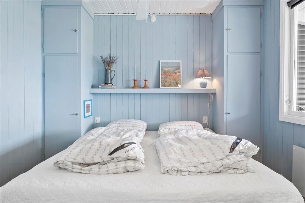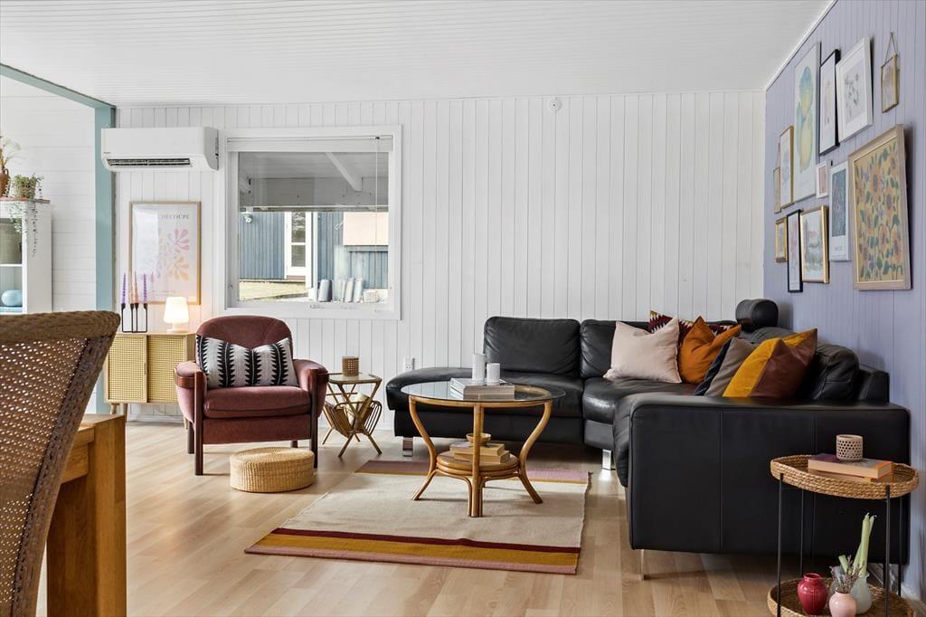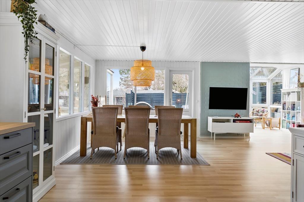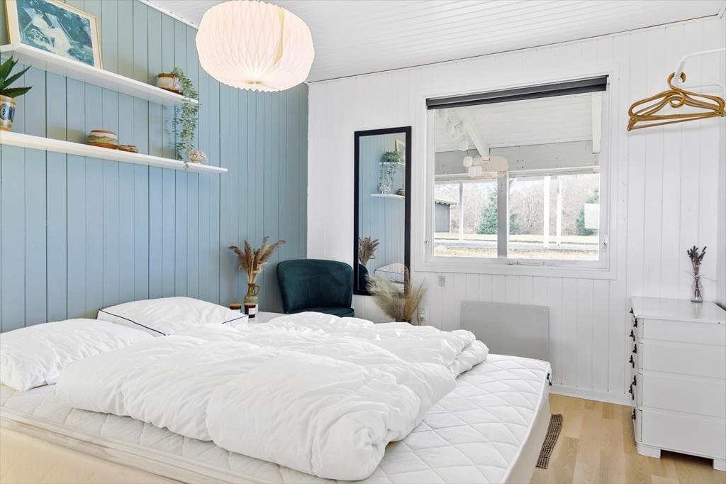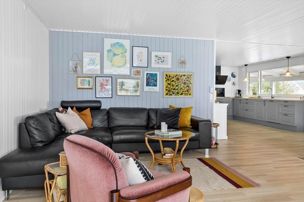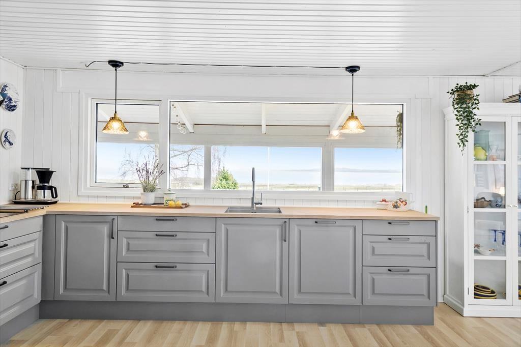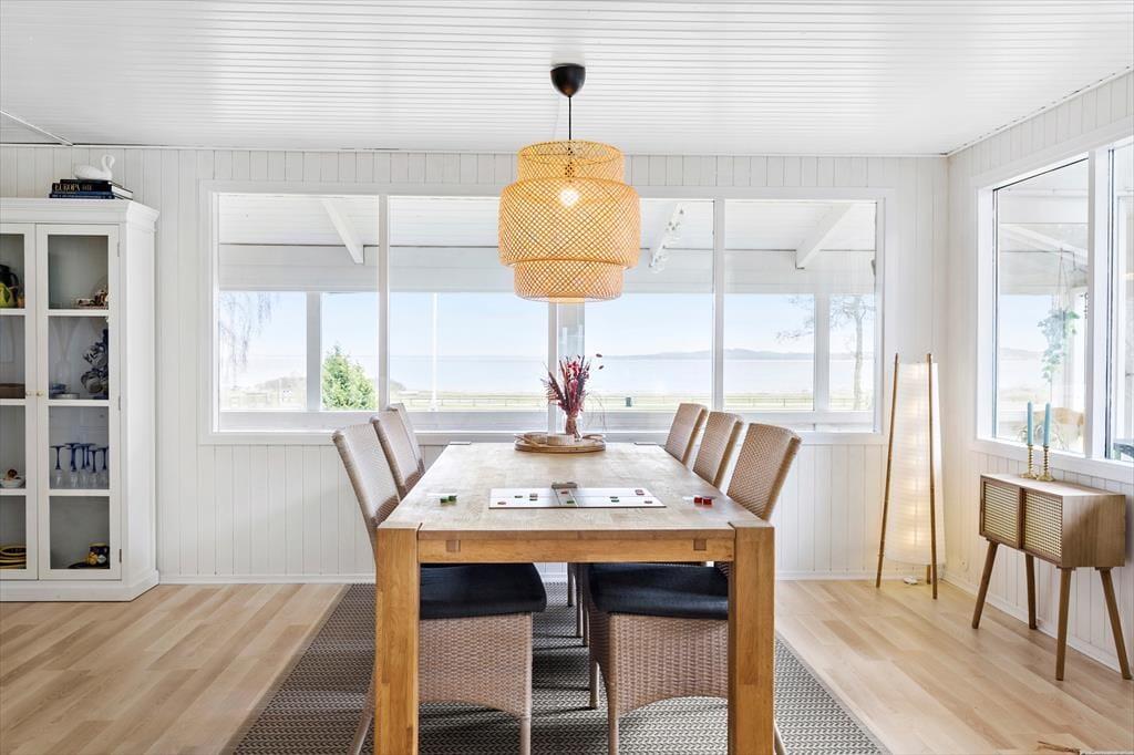 Fjordhøj, som sommerhuset hedder, er fuld af charme og har en utroligt behagelig atmosfære, så I kan straks føle jer hjemme i de smagfuldt indrettede rum. Inden døre har I 105 m2 til rådighed, og planløsning passer godt til seks personer med tre gode soveværelser, et pænt badeværelse og et moderne bryggers. Husets oplagte samlingspunkt er den store stue, der har et lækkert åbent køkken i den ene ende og en lysfyldt karnap i den anden. Begge steder har I fri udsigt til Limfjorden, og også fra spisepladsen kan I nyde det smukke syn, når I sidder samlet til en god frokost. Stuen byder derudover på en dejlig sofaafdeling, hvor I kan flade ud med en god bog eller streame film og serier på fladskærms-tv’et.
