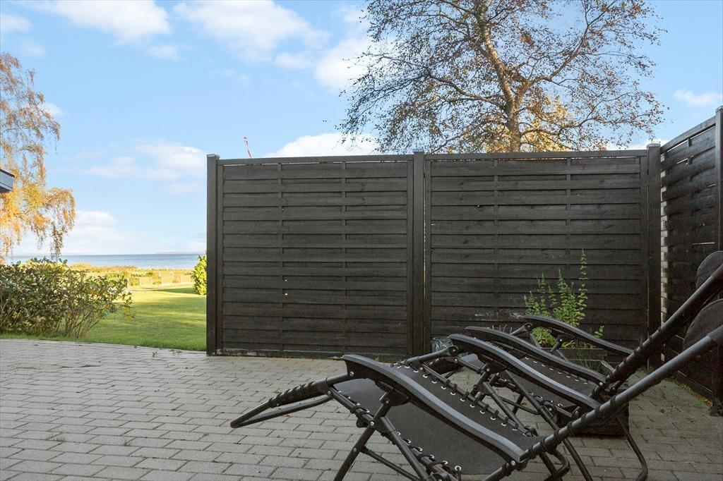 Det smukke kystlandskab kan I selvfølgelig også beundre ude i det fri på den 2500 m2 store grund. Havens græsplæne breder sig ned mod Jelsevej og strandengen, mens terrasserne er samlet oppe omkring huset. Den sydvendte terrasse kan hurtigt blive en favoritplads, for den er stor, delvist afskærmet og udstyret med gode havemøbler, så det er en skøn oase, der indbyder til mange gode stunder.