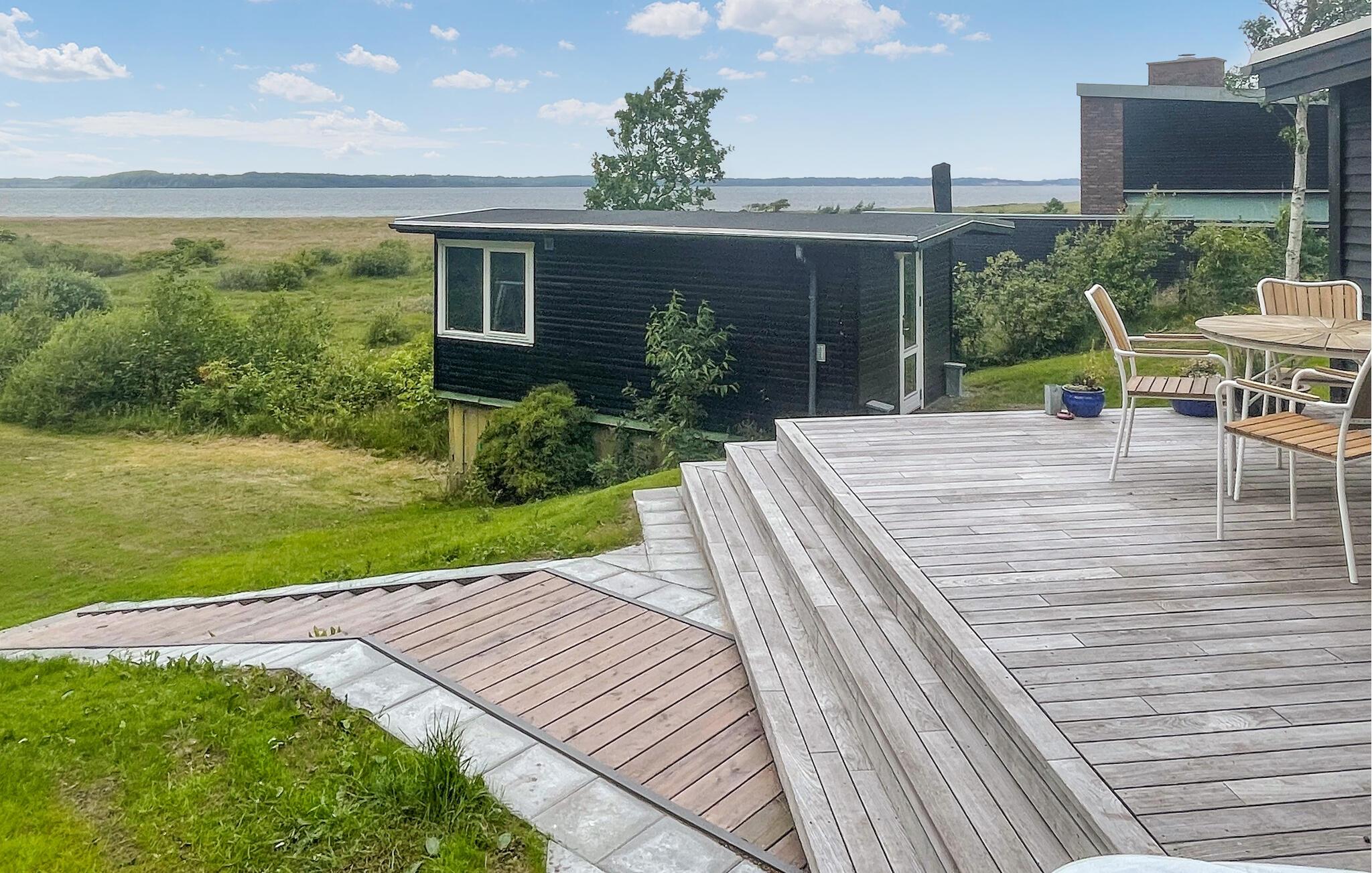Hyggeligt feriehus ved Limfjorden med udendørs spabad og panoramaudsigt til Lundø spids.