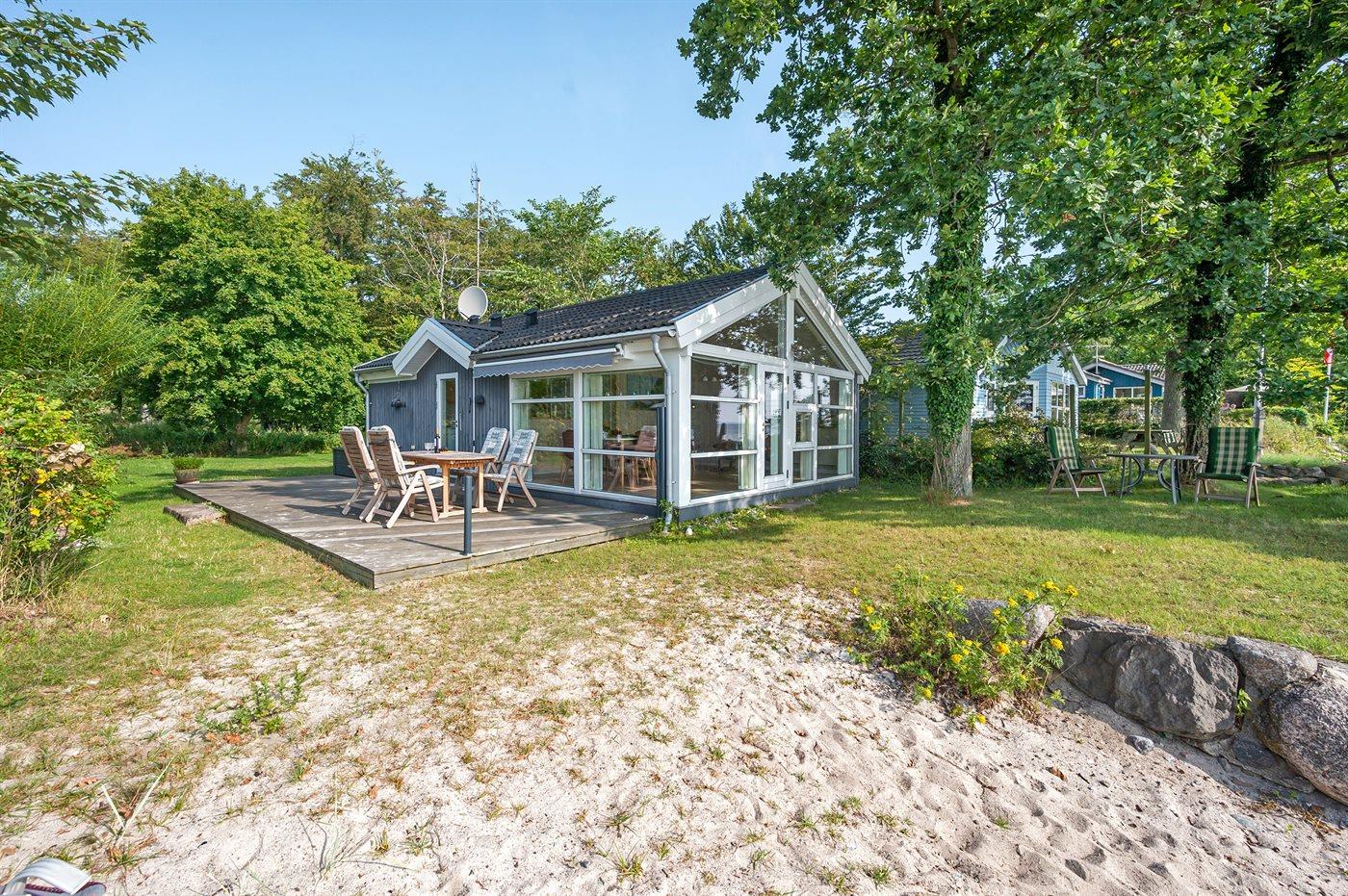 I første række ud mod vandet - med særdeles flot udsigt til Langeland - finder I dette dejlige sommerhus. Huset er et godt valg, hvis man ønsker at holde ferie i fred og ro – da huset ligger i et hyggeligt ferieområde, som er omgivet af vand og skov.