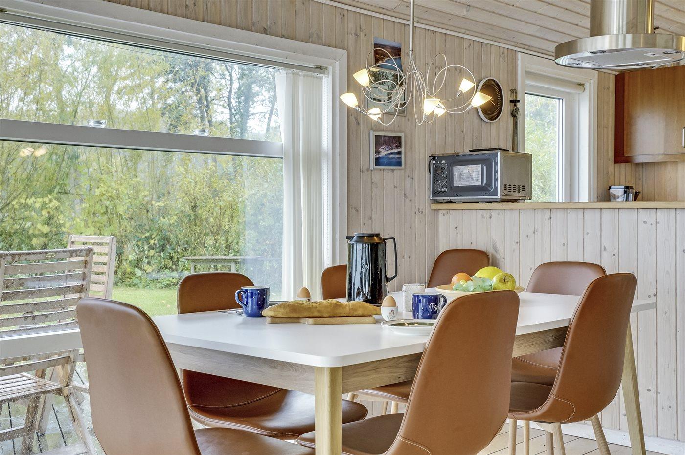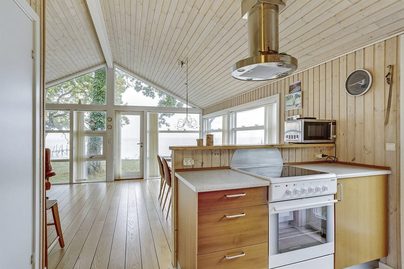 Køkkenet er udstyret med 1 køleskab. Der er 4 keramiske kogeplader, varmluftovn, mikrobølgeovn samt opvaskemaskine.