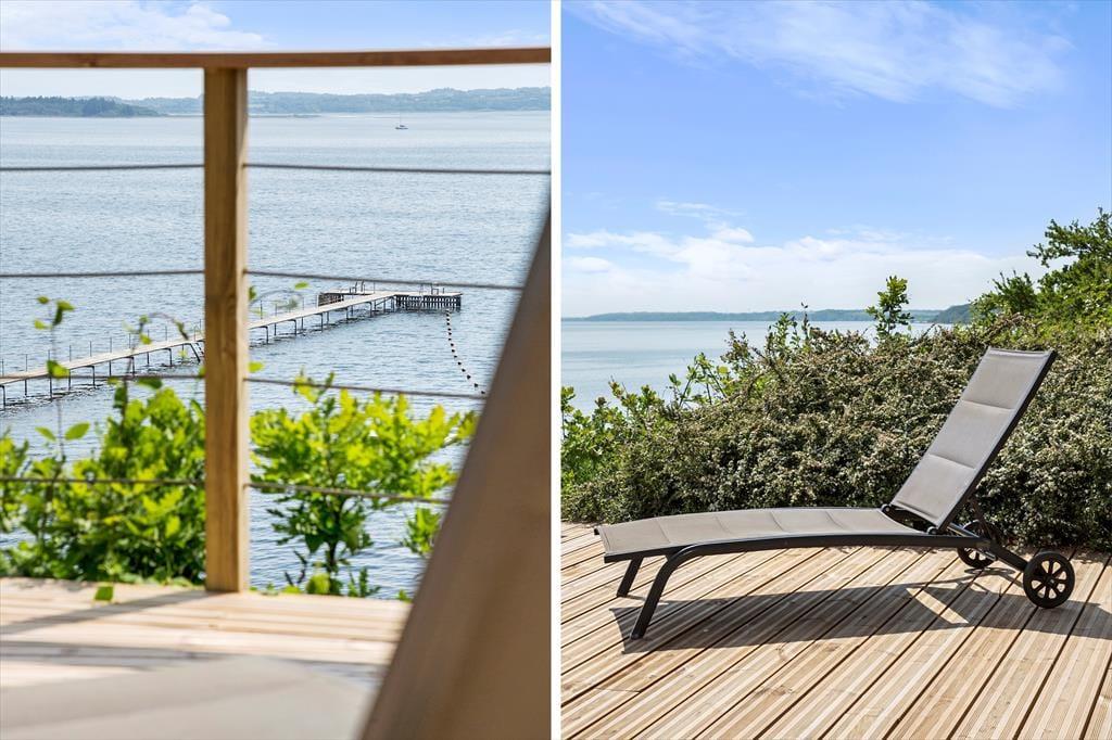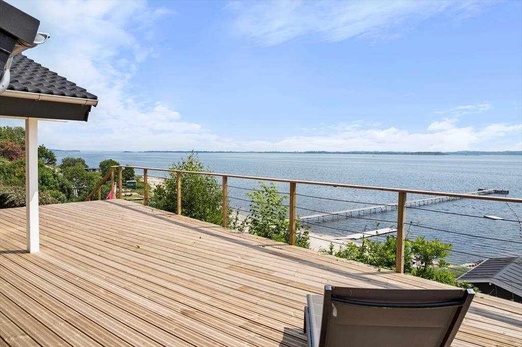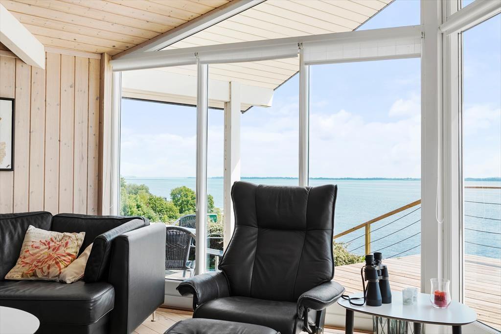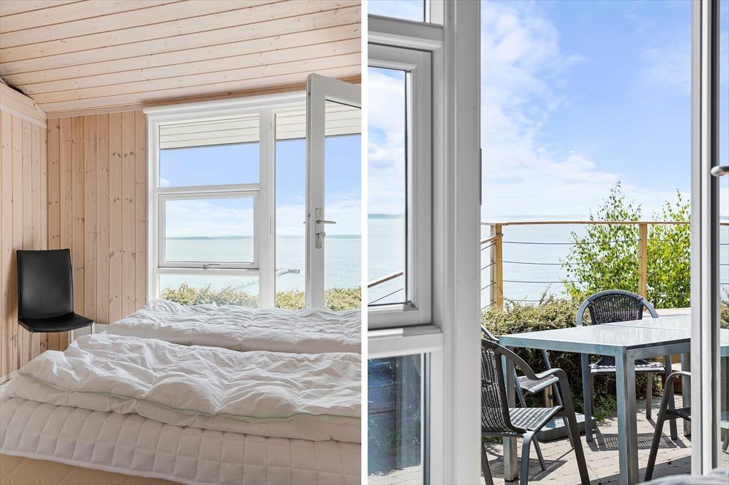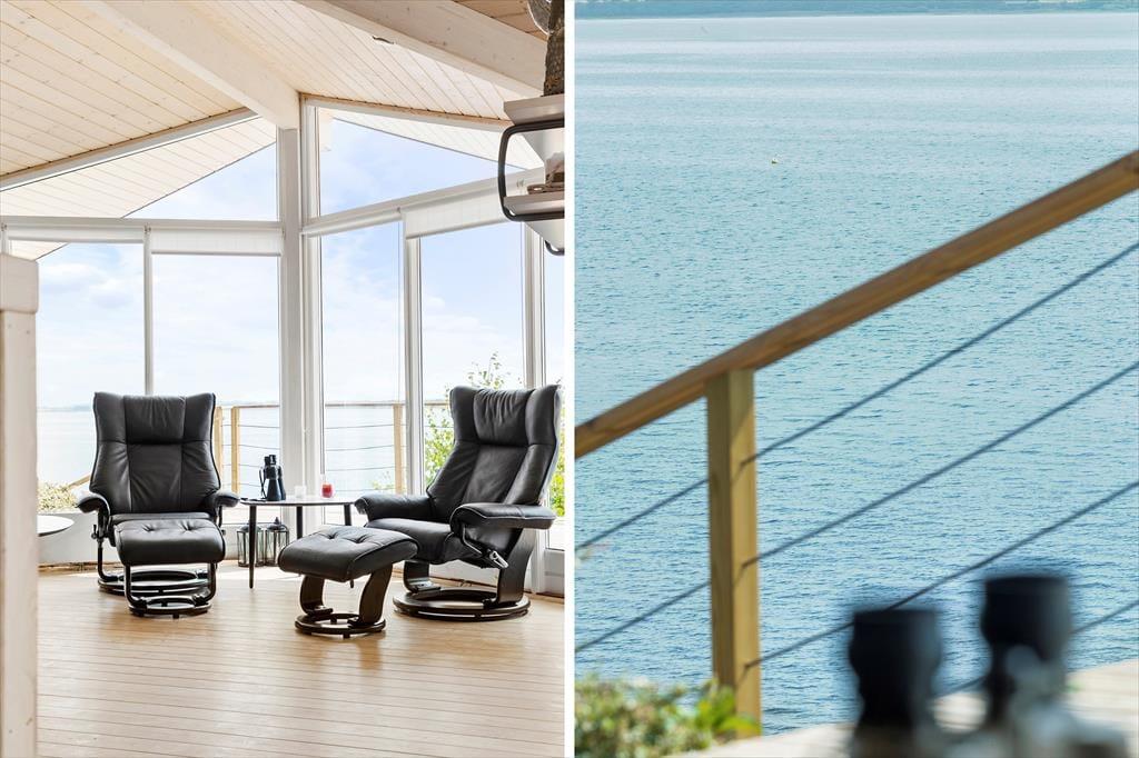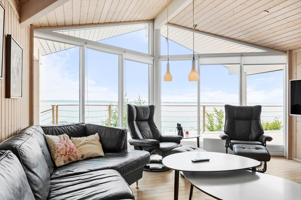Da sommerhuset blev opført i 2010, blev det placeret helt rigtigt på grunden, så I får størst glæde af fjordudsigten. Stuen er udstyret med et kæmpe vinduesparti, der går fra gulv til loft, og takket være opholdsafdelingens åbne forbindelse, kan I også beundre vandomgivelserne, når I står i køkkenet. To af de tre soveværelser vender som tidligere nævnt også ud mod fjorden, og fra det ene har I endda direkte adgang til terrassen. Sommerhuset har for øvrigt god wi-fi-forbindelse og fladskærms-tv med Chromecast, og det store badeværelse er på lækker vis indrettet med spabad.