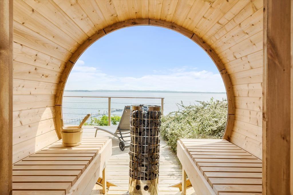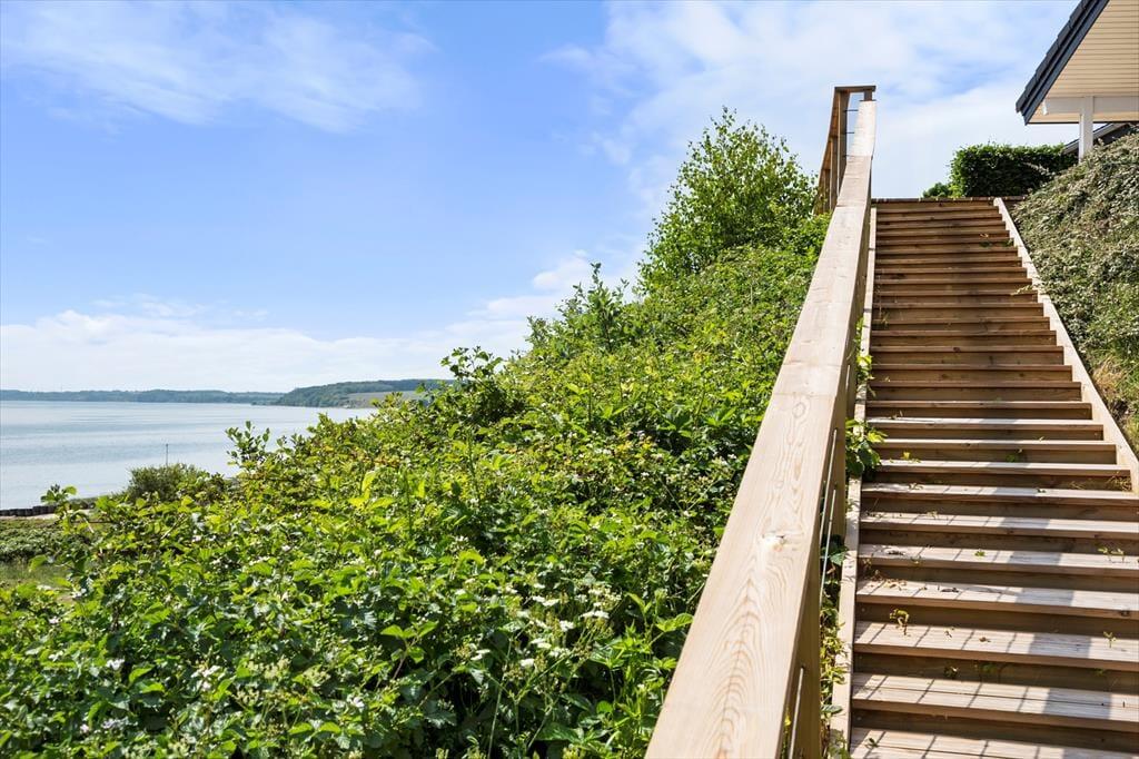 De smukke omgivelser bliver bestemt ikke mindre imponerende, når I opholder jer på terrassen. Her bliver sanserne vakt, når I kan dufte den friske fjordluft og mærke solens varme – og måske kan I endda høre fjordens bølgebrus, mens I kigger ud over vandet. En delvist overdækket fliseterrasse breder sig langs med sommerhuset, og foran er der også flisebelægning, hvor bilen kan parkeres. Er I ejere af en elbil, er der for øvrigt mulighed for opladning, hvis I medbringer et kabel.