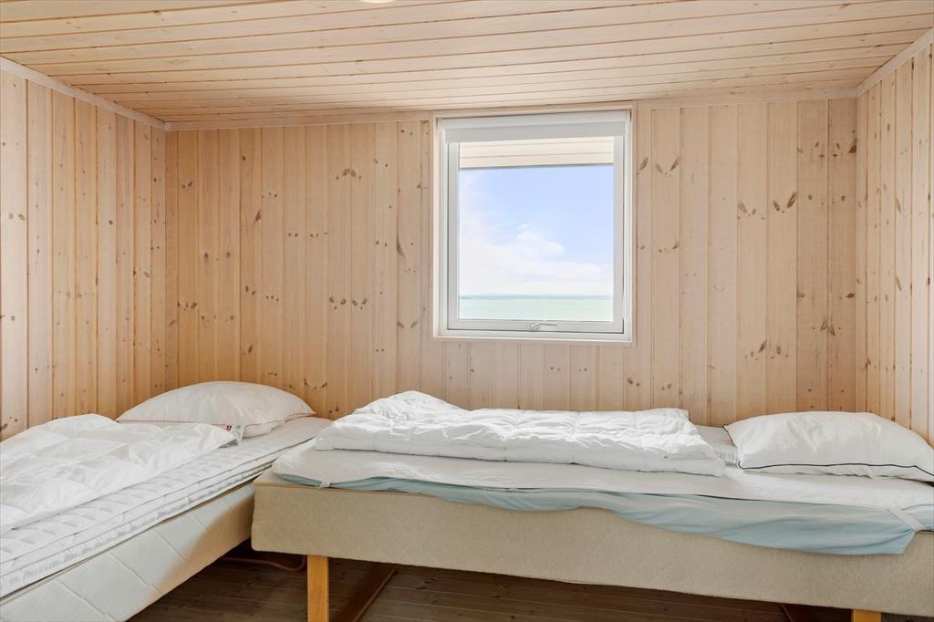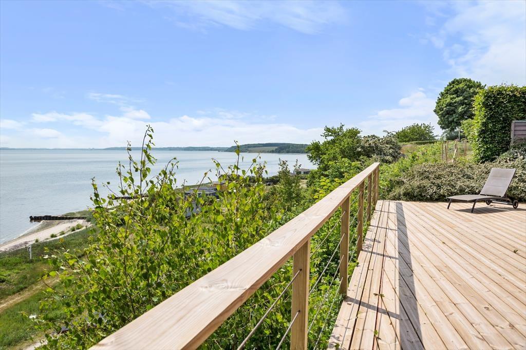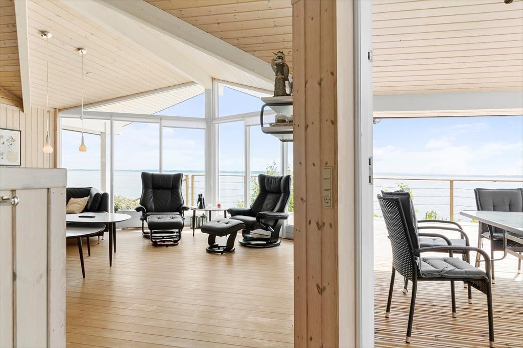 Dette lyse og velholdte sommerhus ligger højt i kystlandskabet lige ud til Lyby Strand. Derfor bliver I forkælet med den flotteste panoramaudsigt over Limfjorden fra både stuen og terrassen, og selv på to af soveværelserne kan I vågne op til det smukke syn af blå bølger og høj himmel.