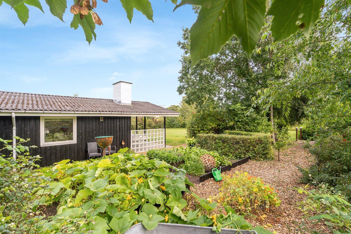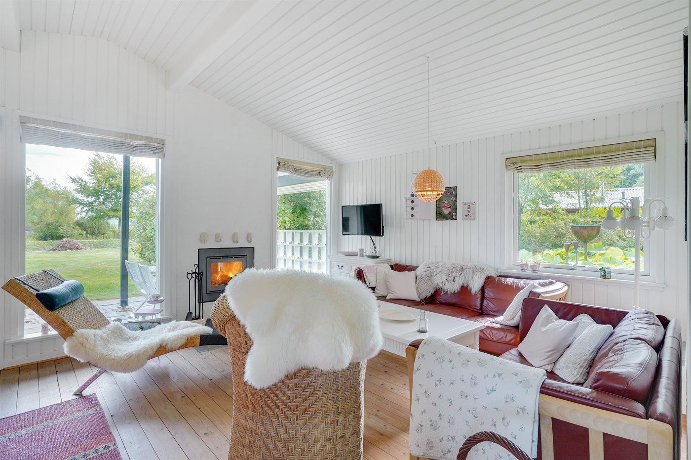 Et hyggeligt og romantisk indrettet sommerhus beliggende på en dejlig stor grund, ikke langt fra den skønne, børnevenlige strand i Lyby ved Limfjorden.