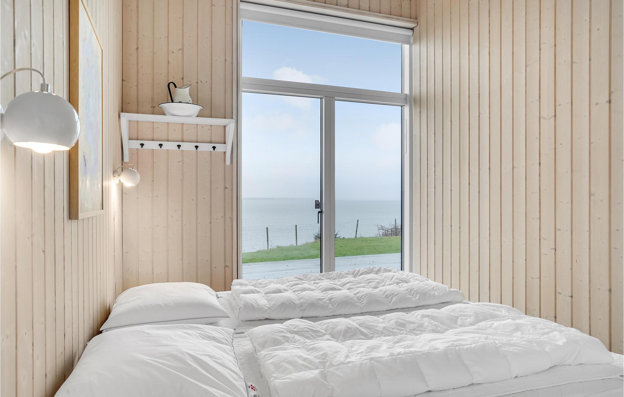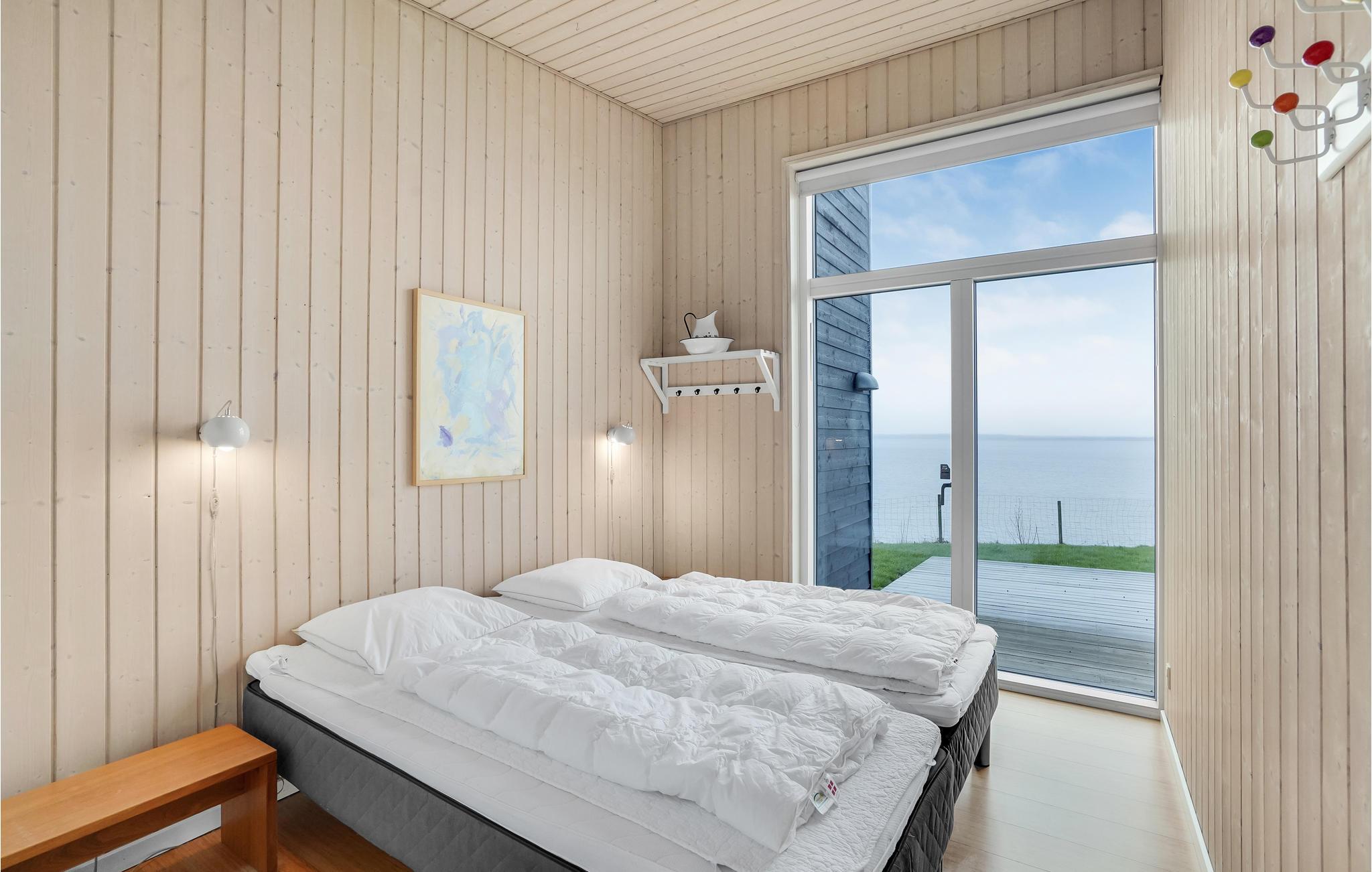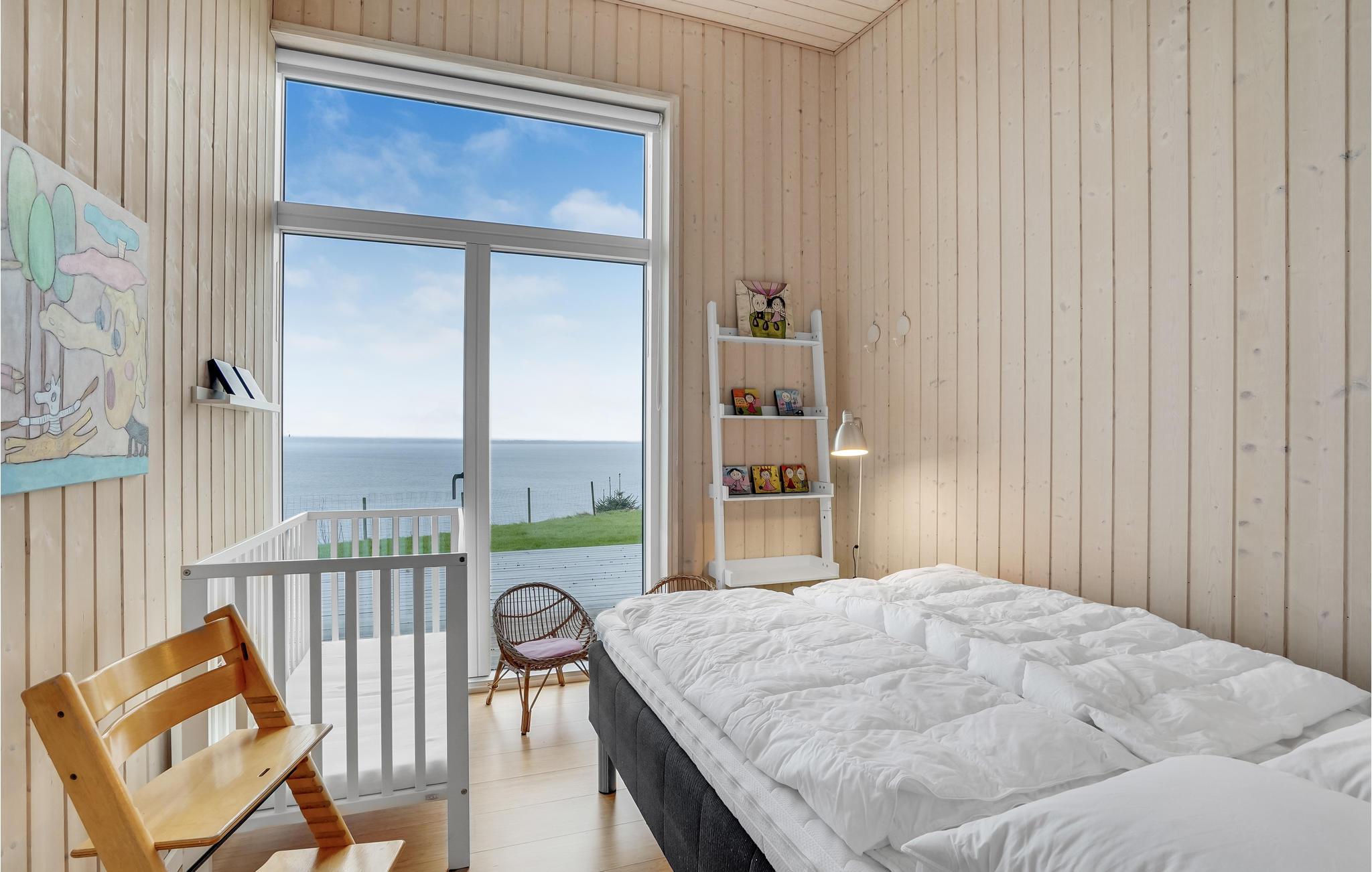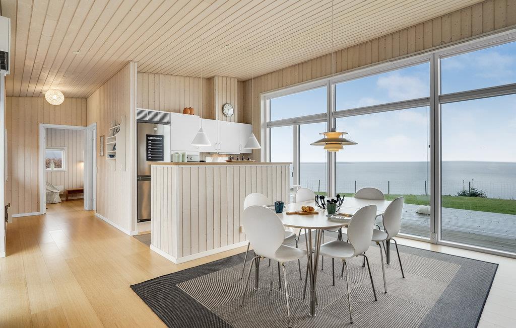 Bo i et sommerhus, med en af de mest unikke beliggenheder ved Limfjorden. Her er tale om ikke blot panoramaudsigt, men superpanorama, både fra huset og fra terrassen der strækker sig i hele husets bredde. Fra huset fører en sti med trappe ned til stranden, til badebroen, hvorfra det er nemt at hoppe i bølgen blå. Vil I bo moderne og indbydende, ønsker høj kvaltiet og super beliggenhed, så er muligheden her. Sæt dig i en god stol på terrassen og lad dig hypnotisere af Limfjordens blanke vand, bølgerne der slår blidt mod kysten og mågernes skrig.