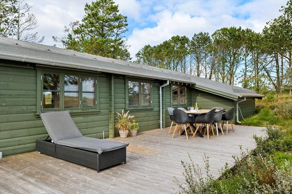 Udearealet er en af sommerhusets helt store fordele. På den enorme grund er der rig mulighed for at finde dit eget hjørne af paradis, uanset om du vil tage en stille gåtur, nyde morgensolen med en kop kaffe eller tage en frisk udendørs bruser efter en lang dag i solen. Den store terrasse med diverse havemøbler indbyder til lange dage under åben himmel, hvor du kan slappe af og lytte til fuglesang eller dykke ned i en god bog. Her kan du virkelig komme tæt på naturen og finde roen, langt væk fra alting.