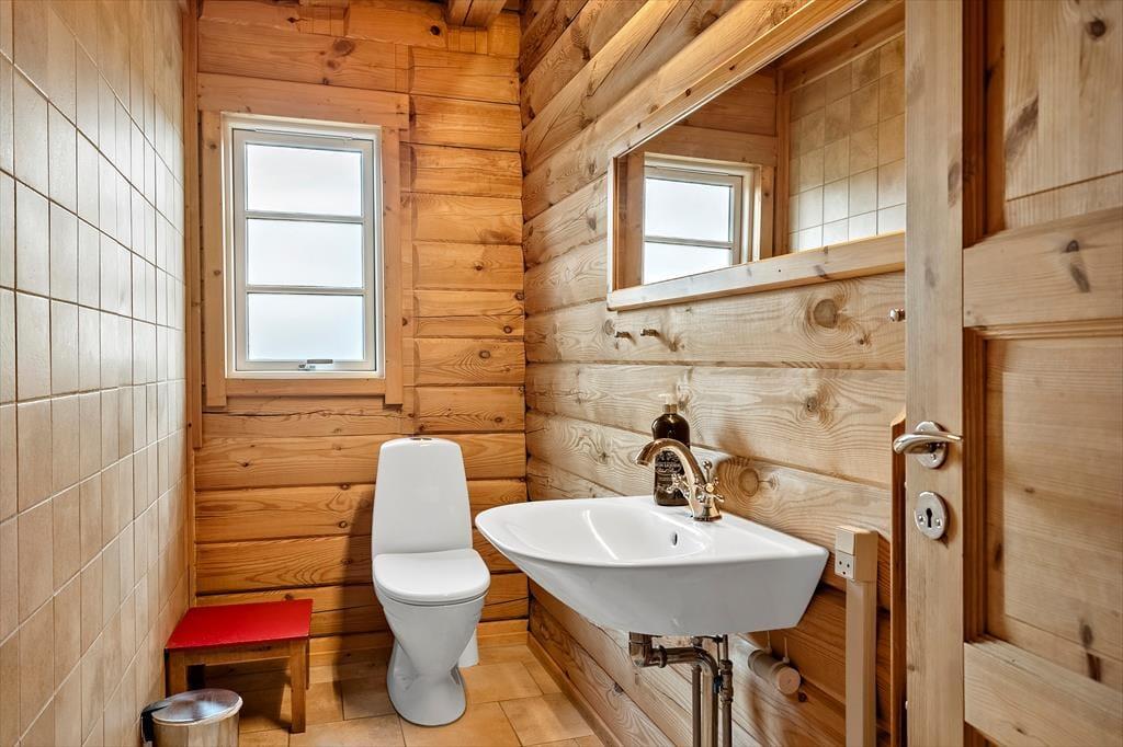 Når du træder indenfor i dette hyggelige bjælkehus, bliver du mødt af en skøn rummelighed, der fremhæves af de synlige bjælker og den imponerende kip. Denne unikke indretning skaber en fantastisk rumfornemmelse og en autentisk, naturlig atmosfære, hvor du straks føler dig hjemme. Husets praktiske og rummelige spisestue og opholdsstue giver mulighed for både hyggelige måltider og afslapning i en stilfuld, men samtidig uformel atmosfære. Husets sauna er med til at sikre, at man i høj grad kan slappe af og regenerere i sin ferie. Den energivenlige opvarmning, der kombinerer luft-til-luft varmepumpe, gulvvarme og en hyggelig brændeovn, sikrer, at du har det dejligt lunt året rundt – ideelt til de kølige dage, hvor du kan sidde og nyde varmen fra ilden og den rolige stemning, der fylder huset.